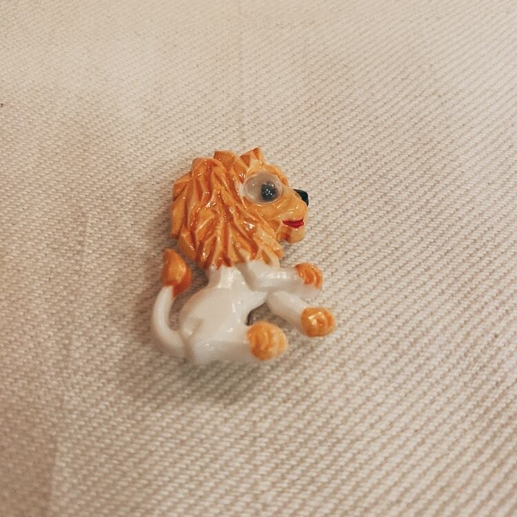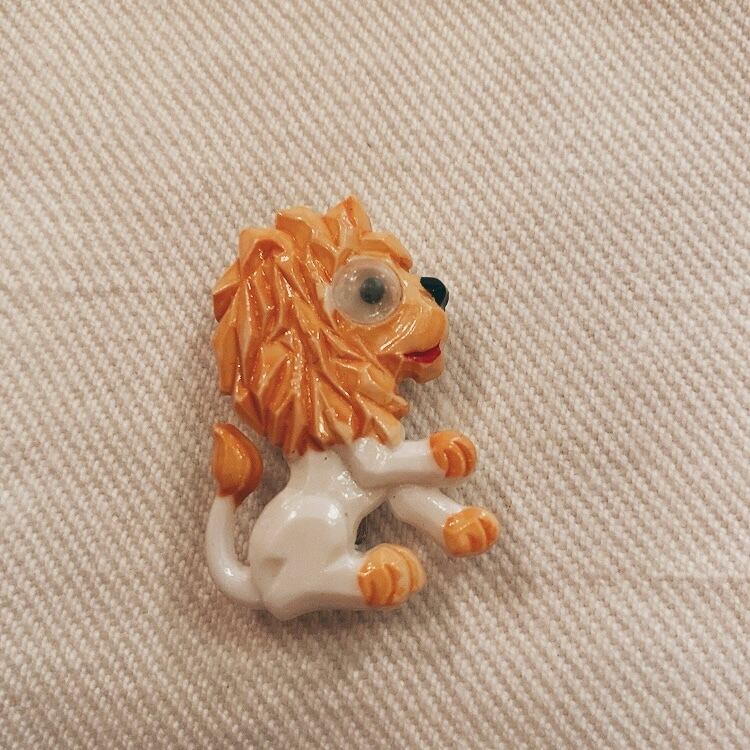 イギリスで出会ったデッドストックのライオンのブローチです。 お目目がきょろきょろ動いてファニーでとてもかわいいです。 size 約4×2.8㎝ オールドプラスチック