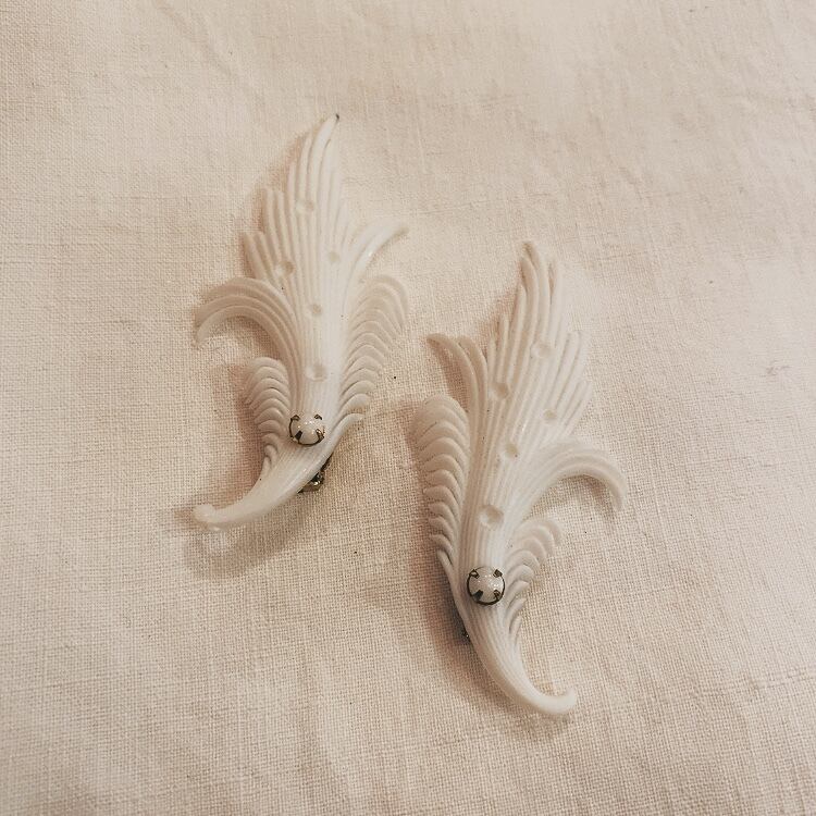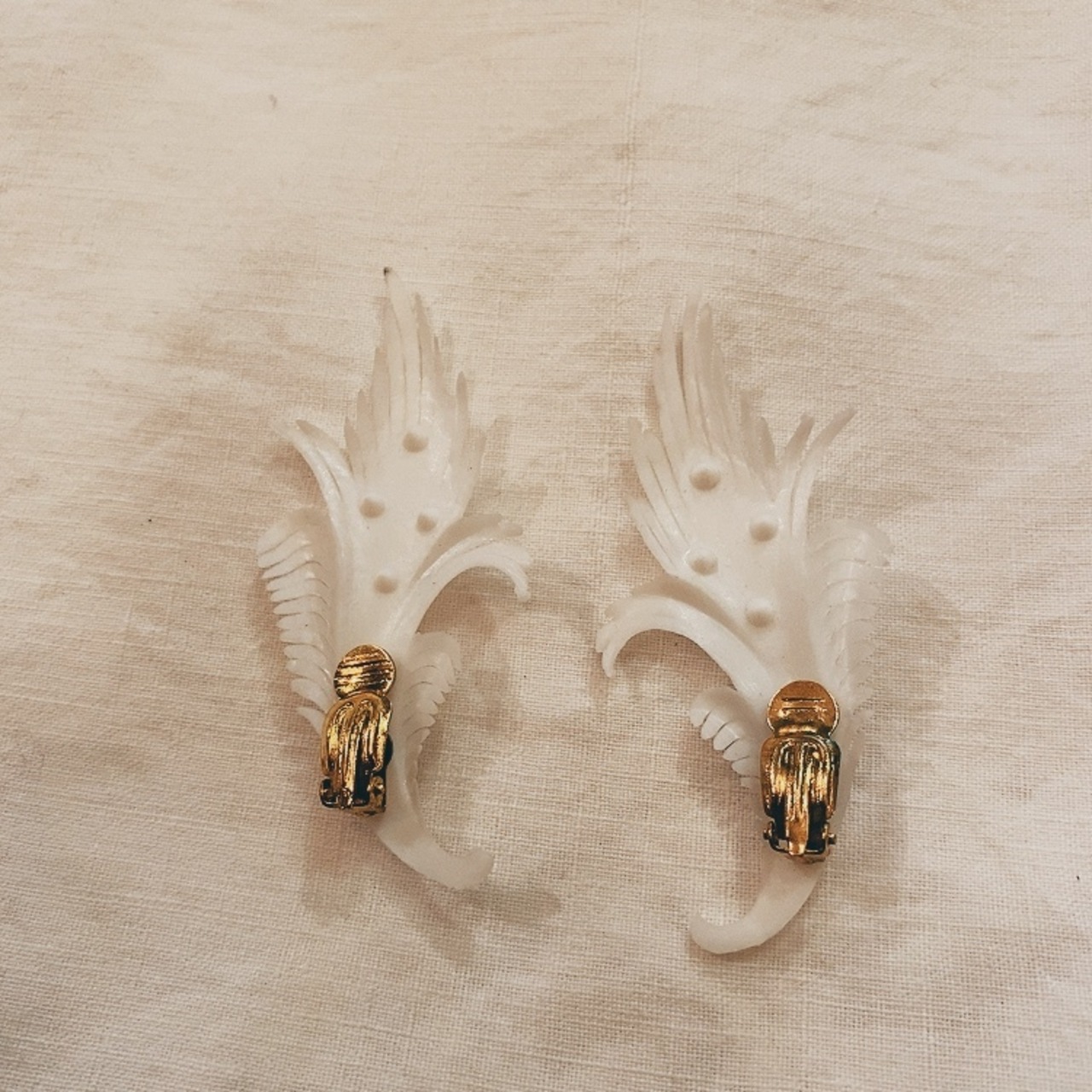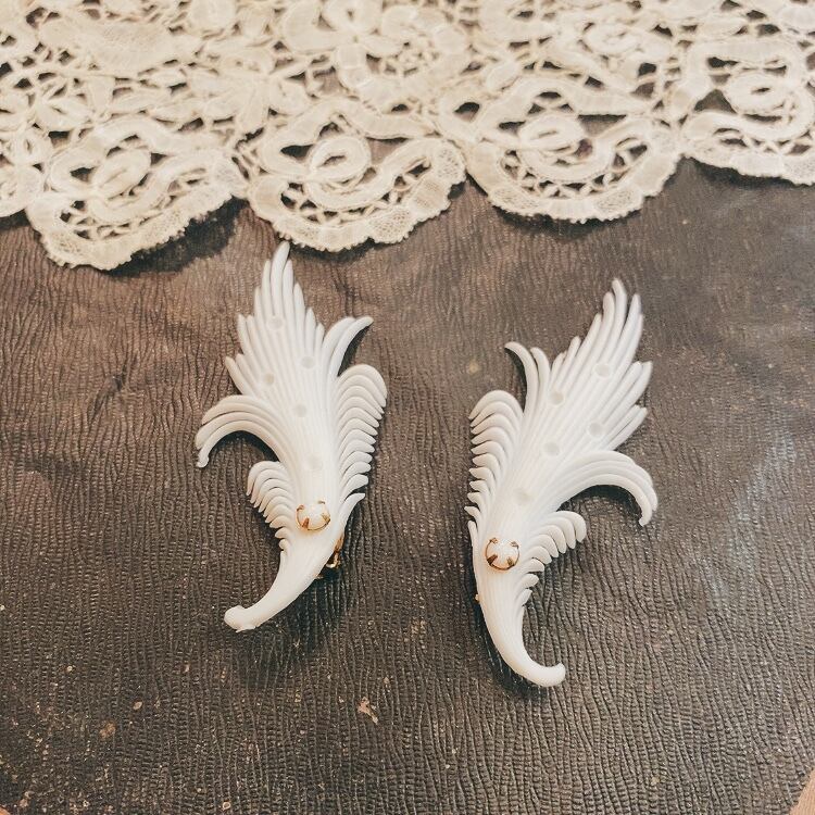 イギリスで出会った デッドストックのイヤリングです。 おおきめですが、シリコン製でとても軽いです。 耳に羽が生えたみたいにとってもキュートに楽しく身につけていただけます。