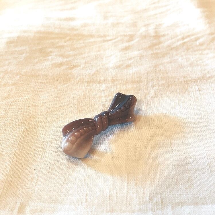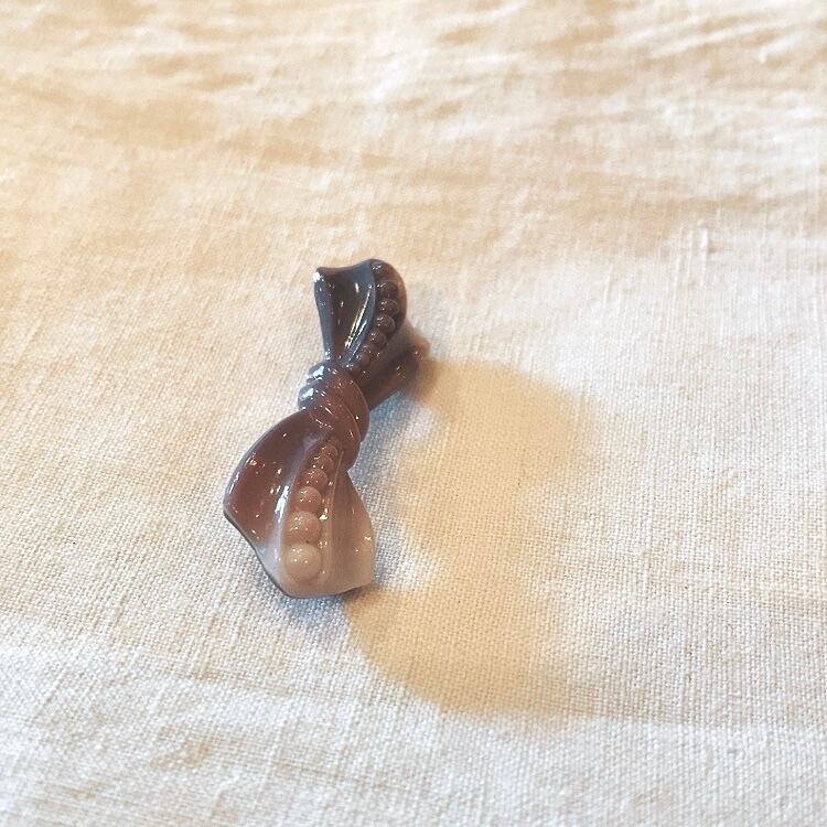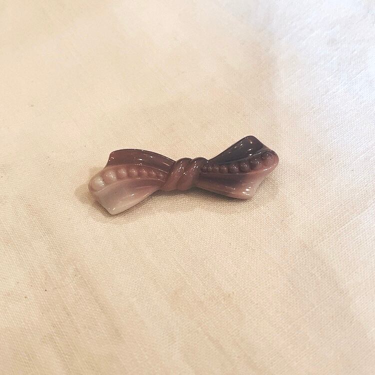デッドストック 紫チェコガラス リボンブローチ
