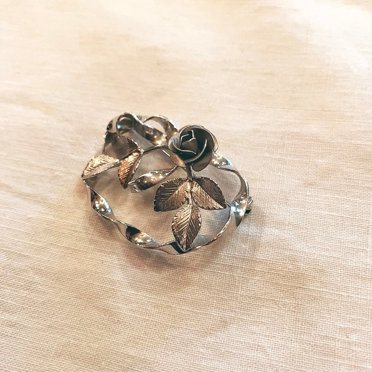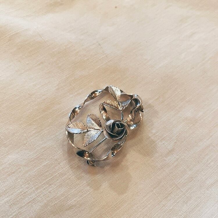 シルバーメタル 薔薇のブローチ