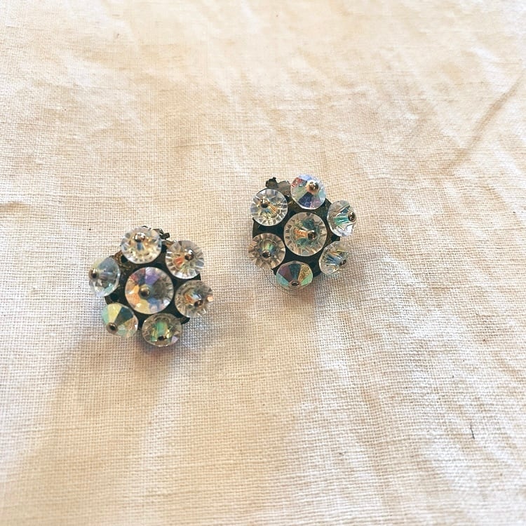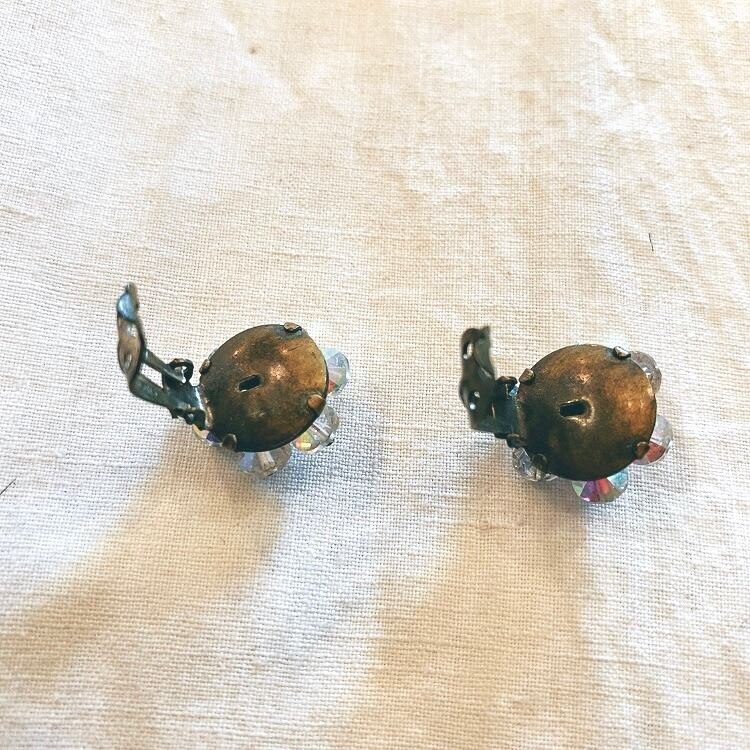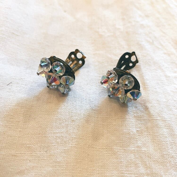 イギリスの蚤の市で出会ったオーロラカラーのイヤリングです。 オーロラ加工されたビーズが使われていてキラキラと七色に光ります。 春や夏は爽やかに演出してくれ 秋や冬は落ち着いたトーンのお洋服を華やかにしてくれます。 どんなファッションにも合わせやすい上品なイヤリングです。 片耳の重さ:約4g 片耳の直径:約2.2㎝