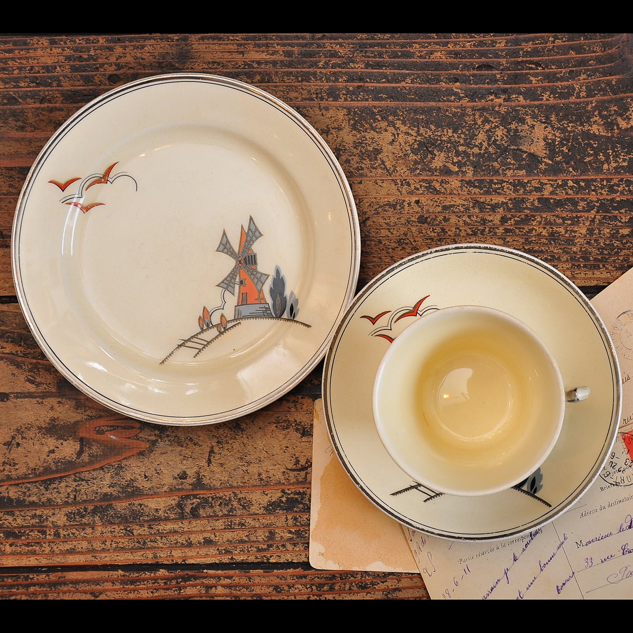 ロンドン郊外のアンティークフェアで出会ったミッドウィンター社のトリオ(カップ&ソーサー、ケーキ皿のセット)です。