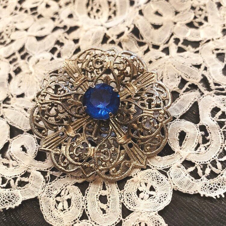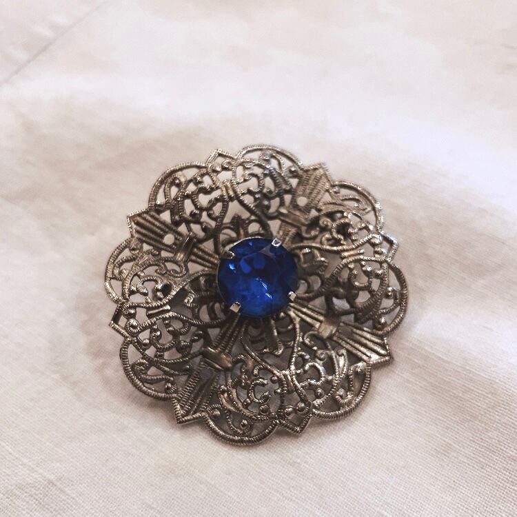 ブルーガラス 透かしのブローチ(b31)