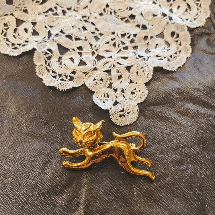 イギリスのフェアで出会ったデッドストックの猫のブローチです。