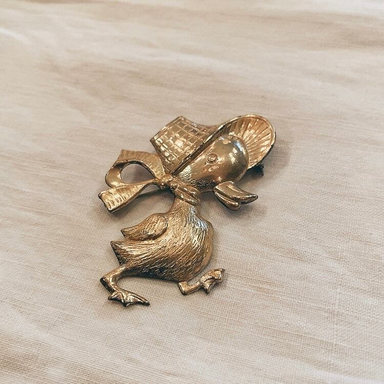 ベルリンからやってきたお洒落なお出かけアヒルちゃんのブローチです。