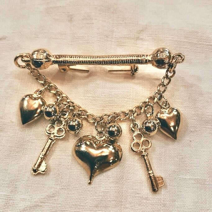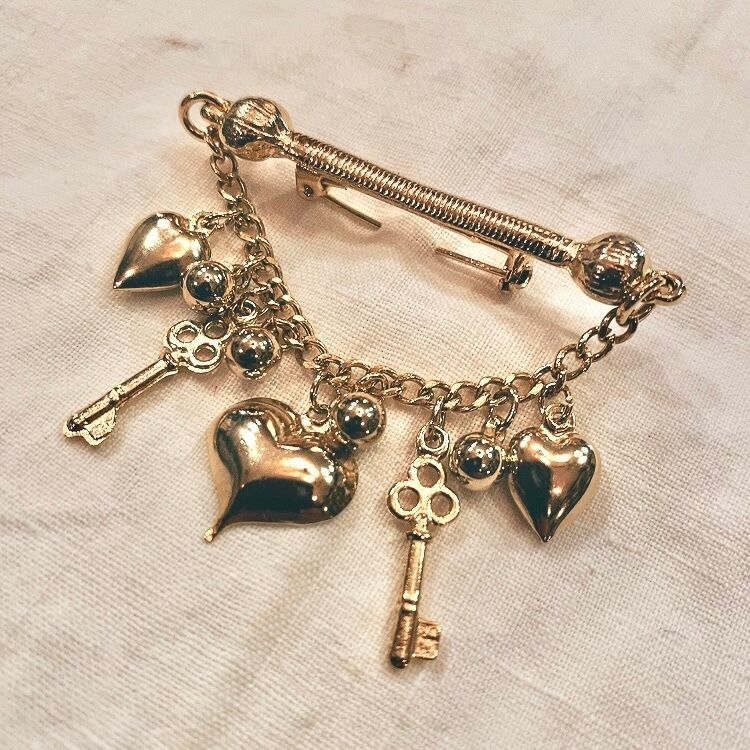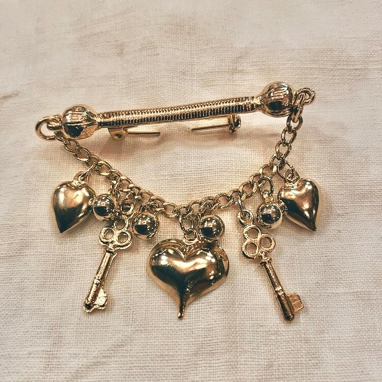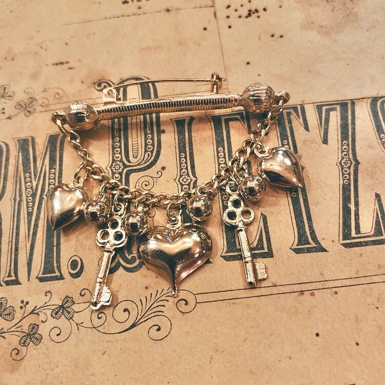 デッドストック ハートと鍵のチャームブローチ(b46)