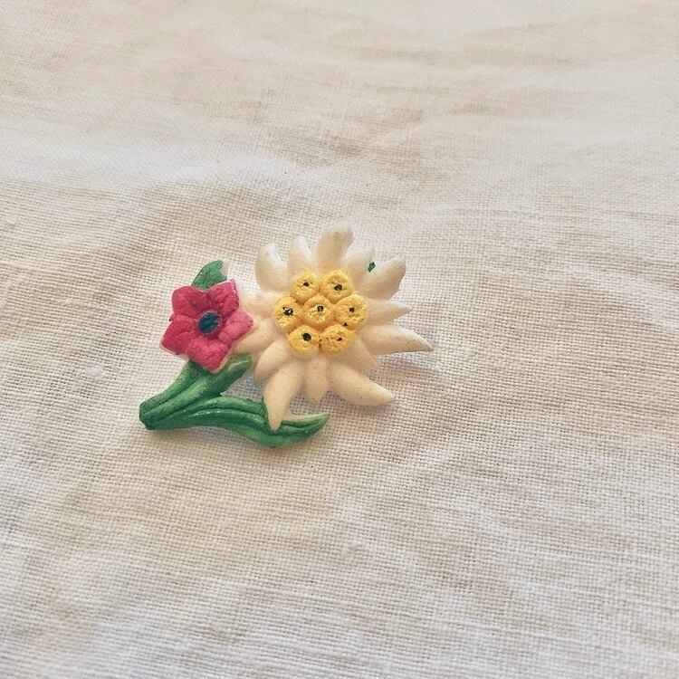 デッドストック エーデルワイスとピンクのリンドウのブローチ(b49)