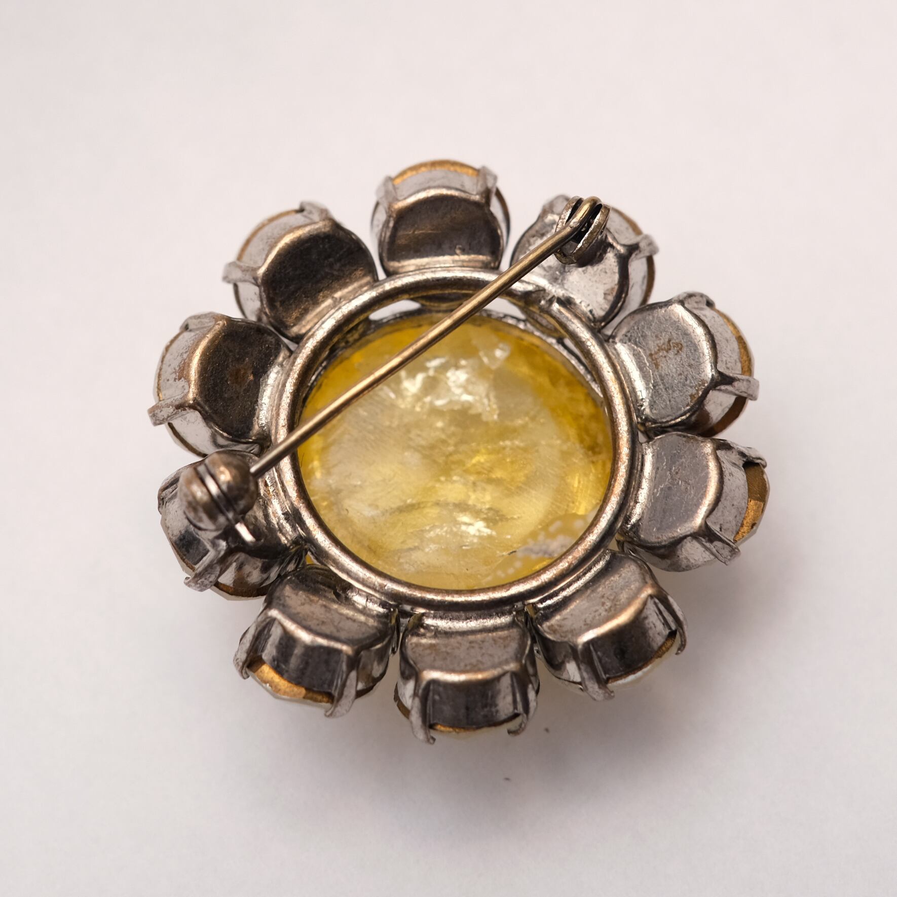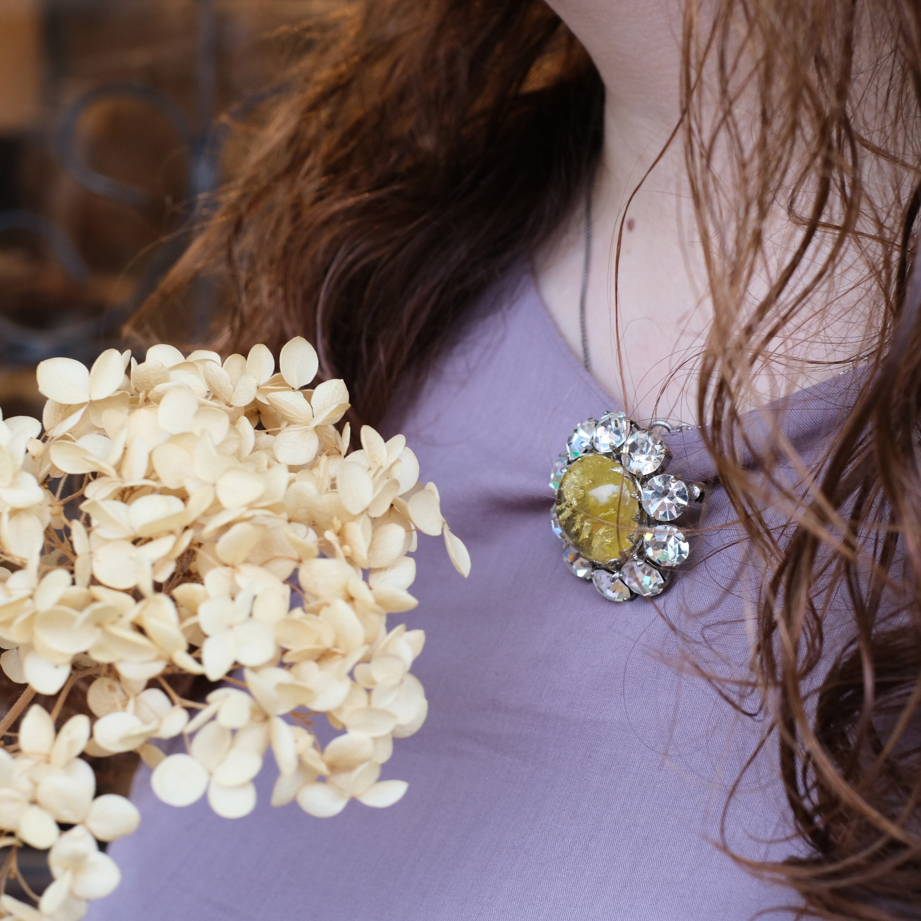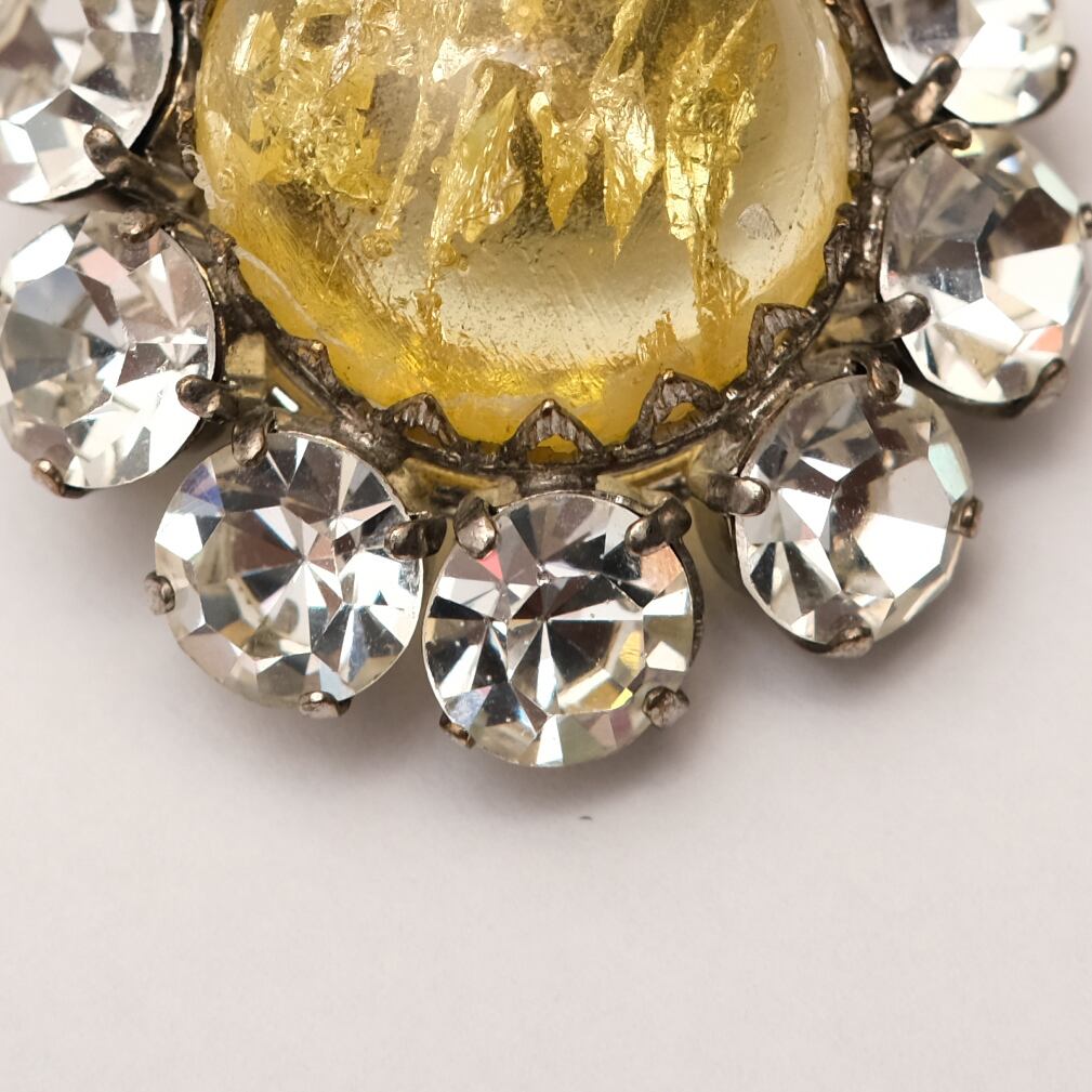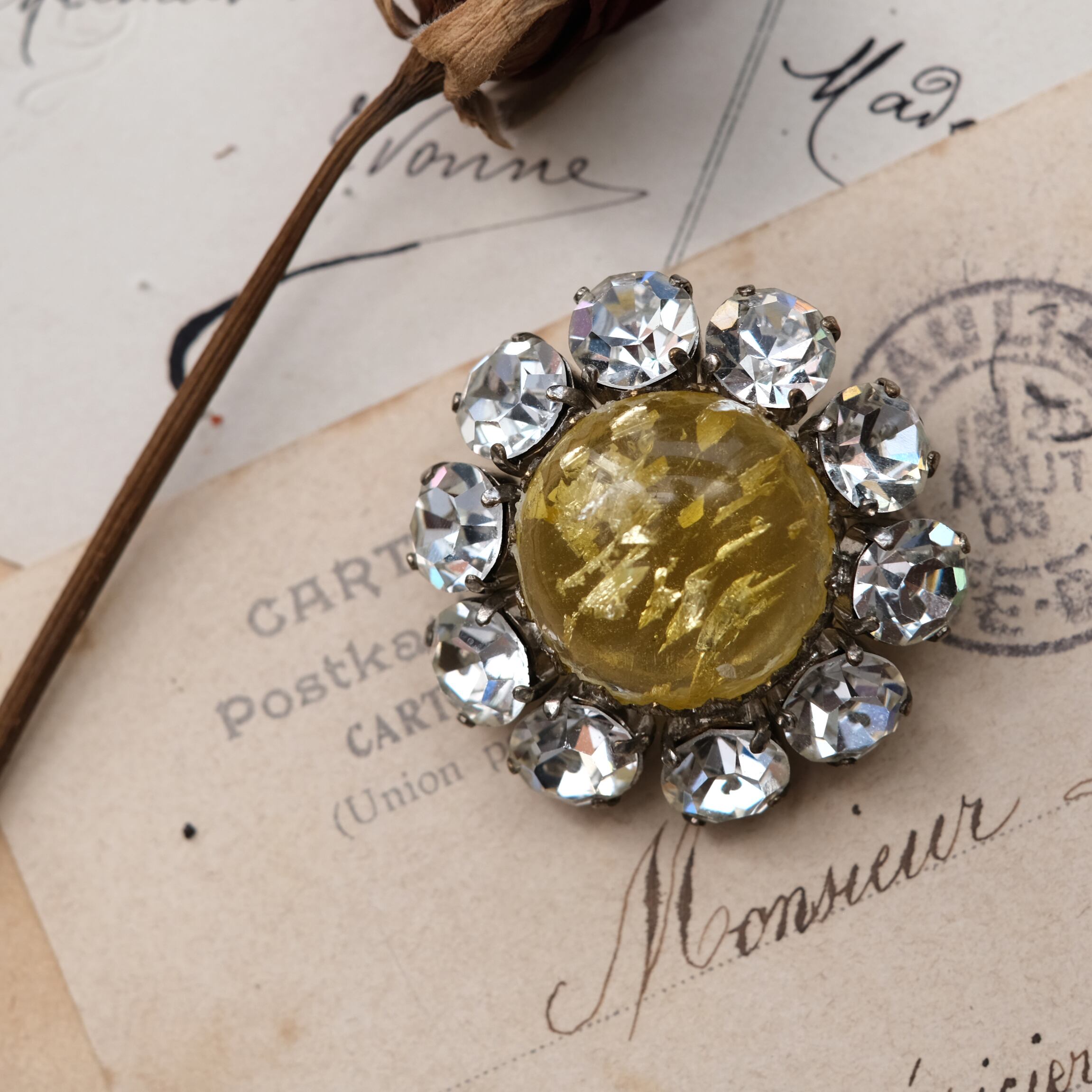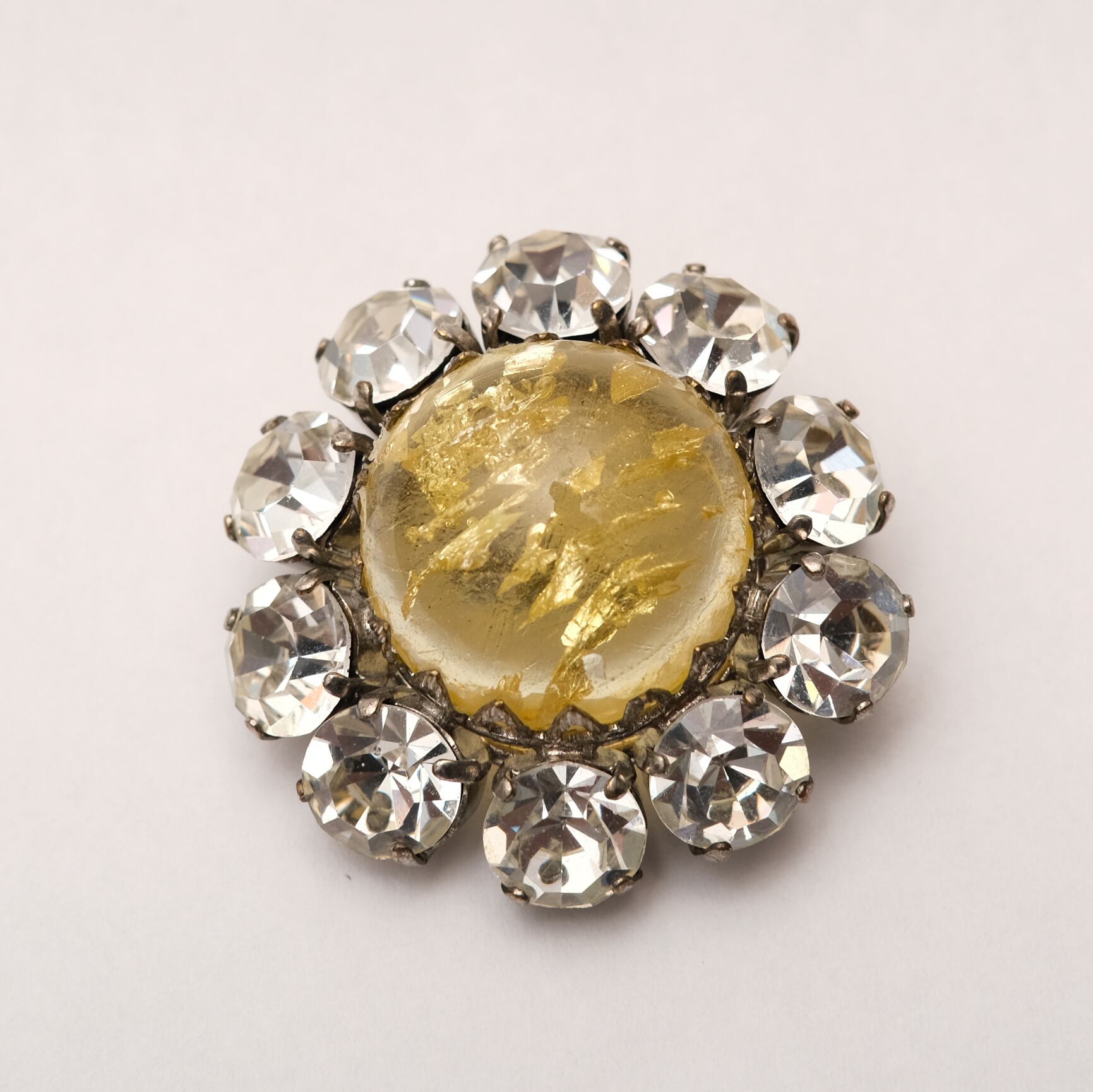 ラインストーンと黄色いカボッションのブローチ[anac01186]