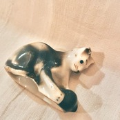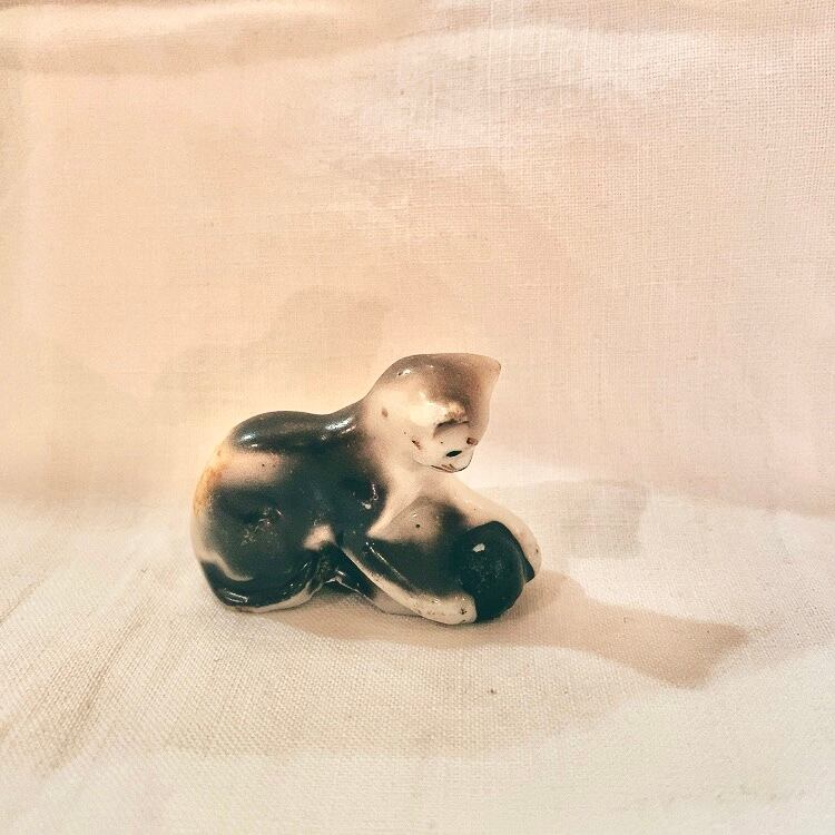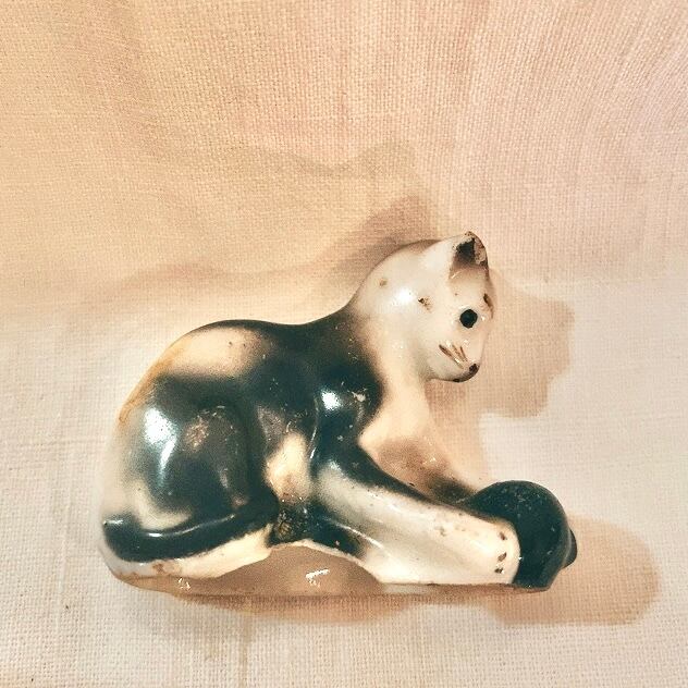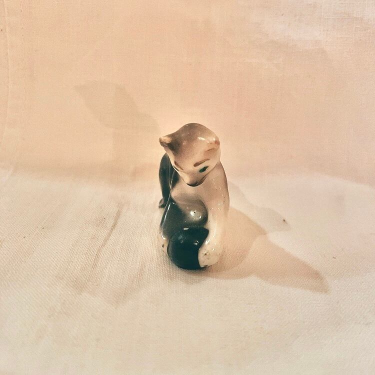 陶器製 ボールで遊ぶ猫の小さな置物(ne1)
