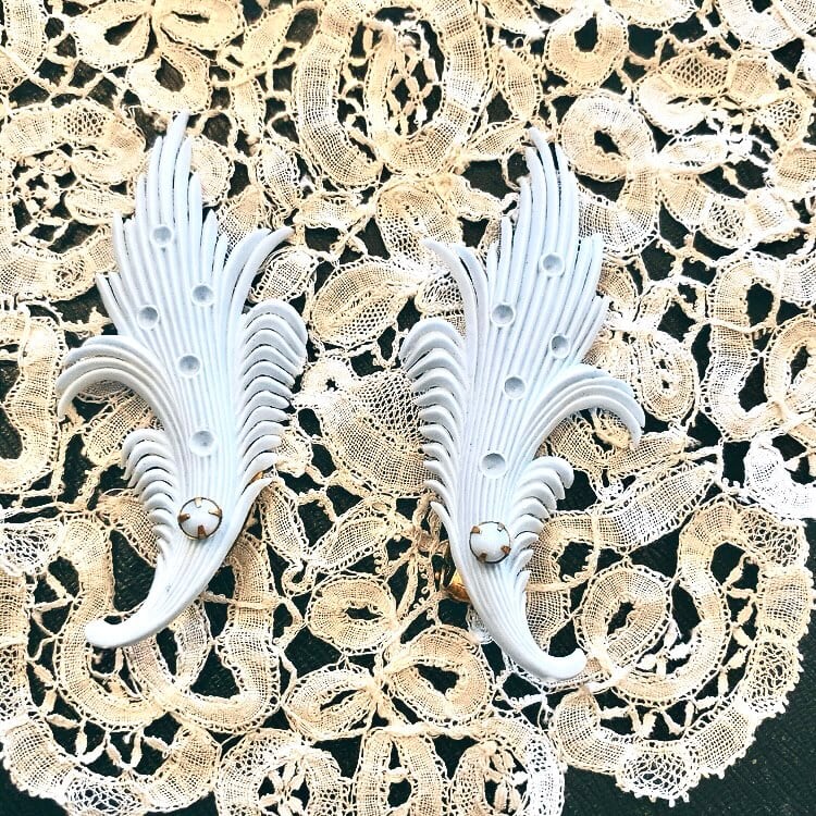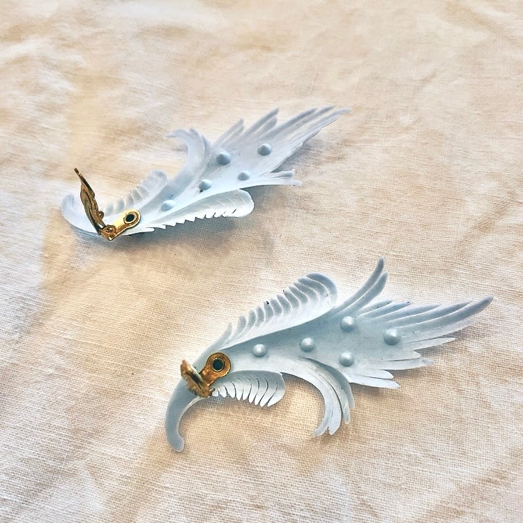 デッドストック シリコン製 ブルーの羽根イヤリング