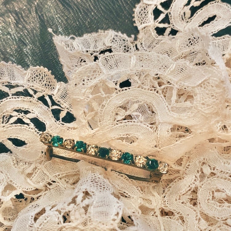 グリーンとクリア アンティークペーストガラスのバーブローチ(b53)