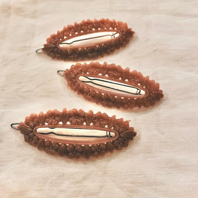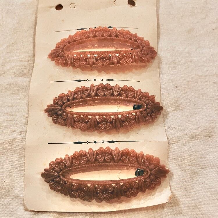 ロンドンで出会ったデッドストックのオールドプラスチック製ヘアクリップです。