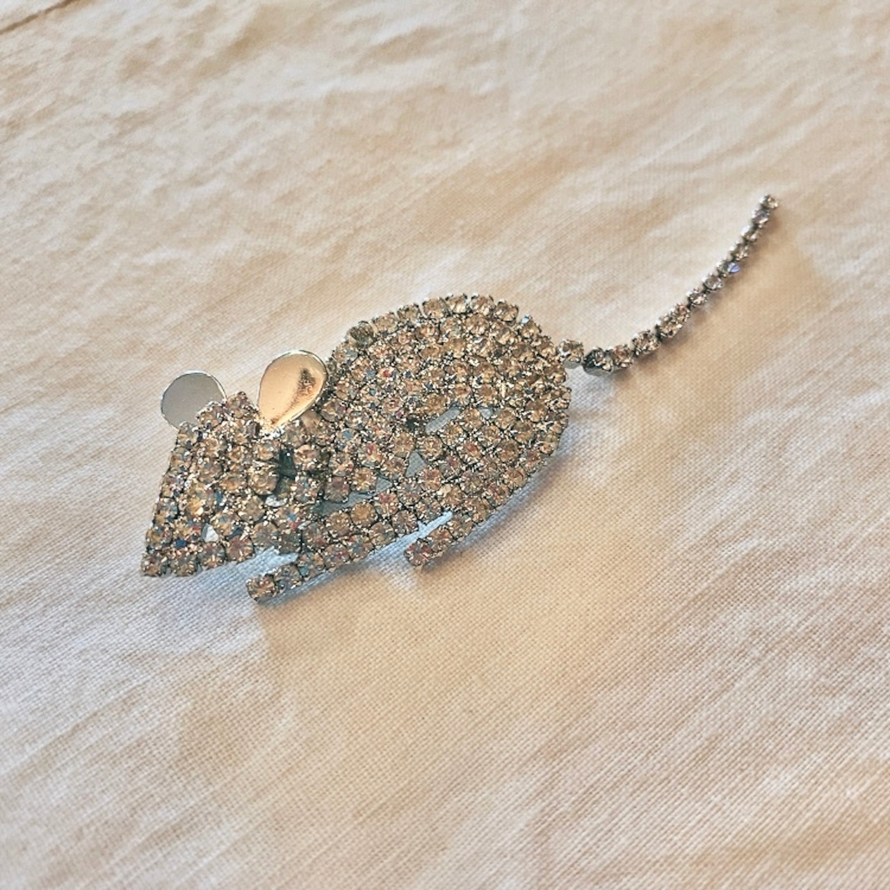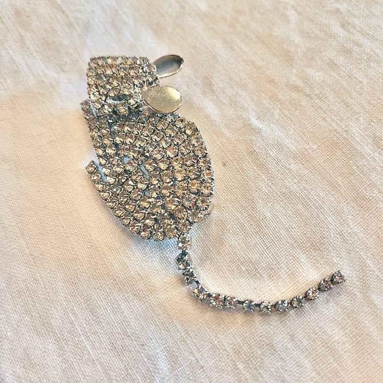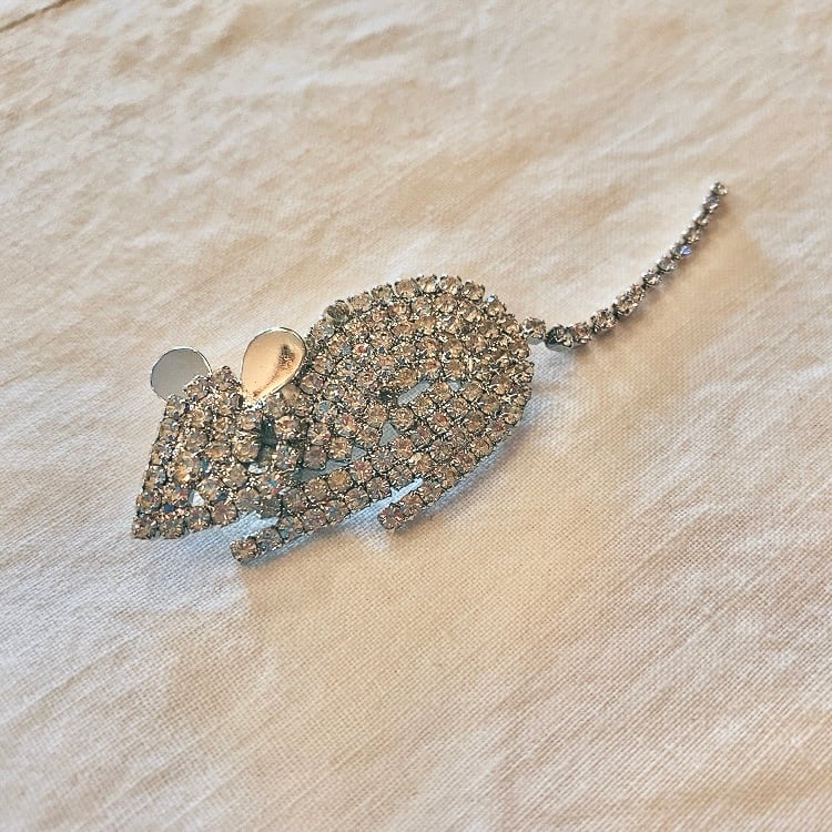 チェコからやってきたデッドストック ラインストーンのねずみさんブローチです。