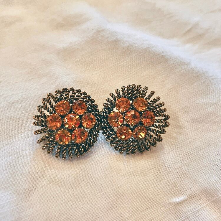 ベルリンからやってきたアンバーカラーのガラスがキラキラ美しいブローチです。