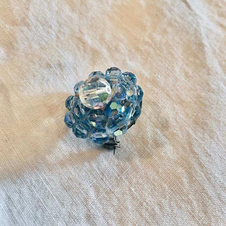 イギリスで出会ったブルービーズのブローチです。