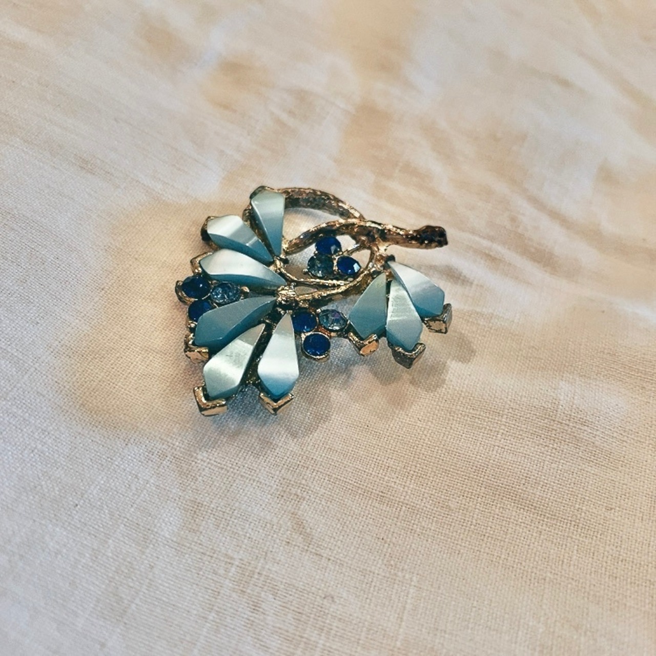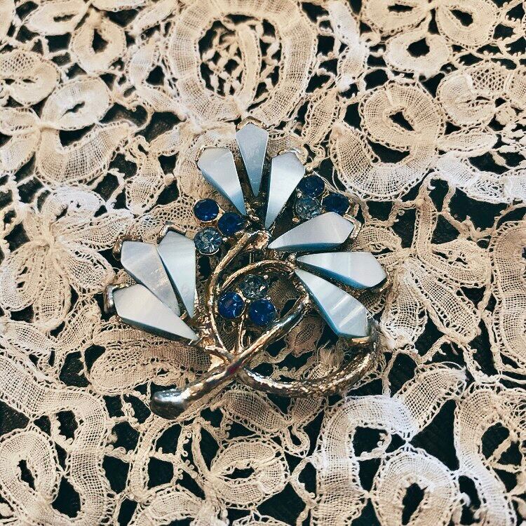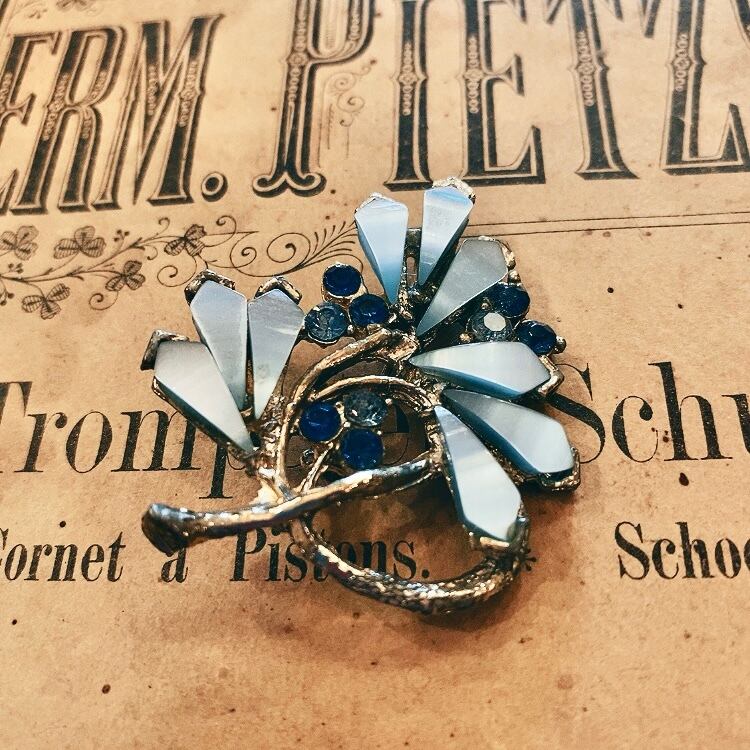 イギリスの蚤の市で出会った涼やかなブルーのブローチです。