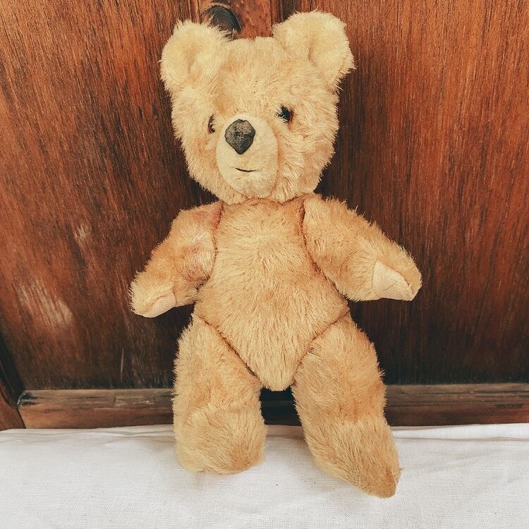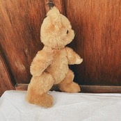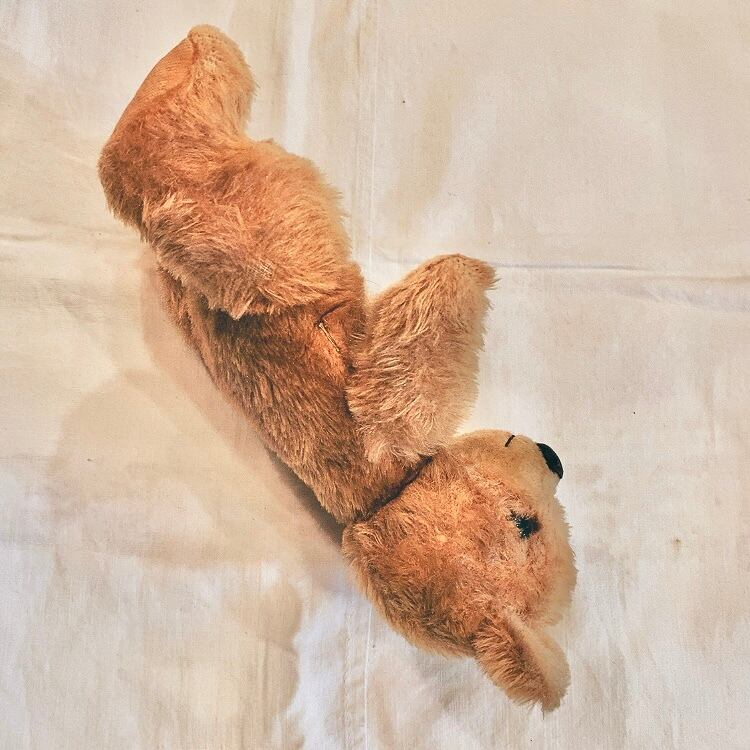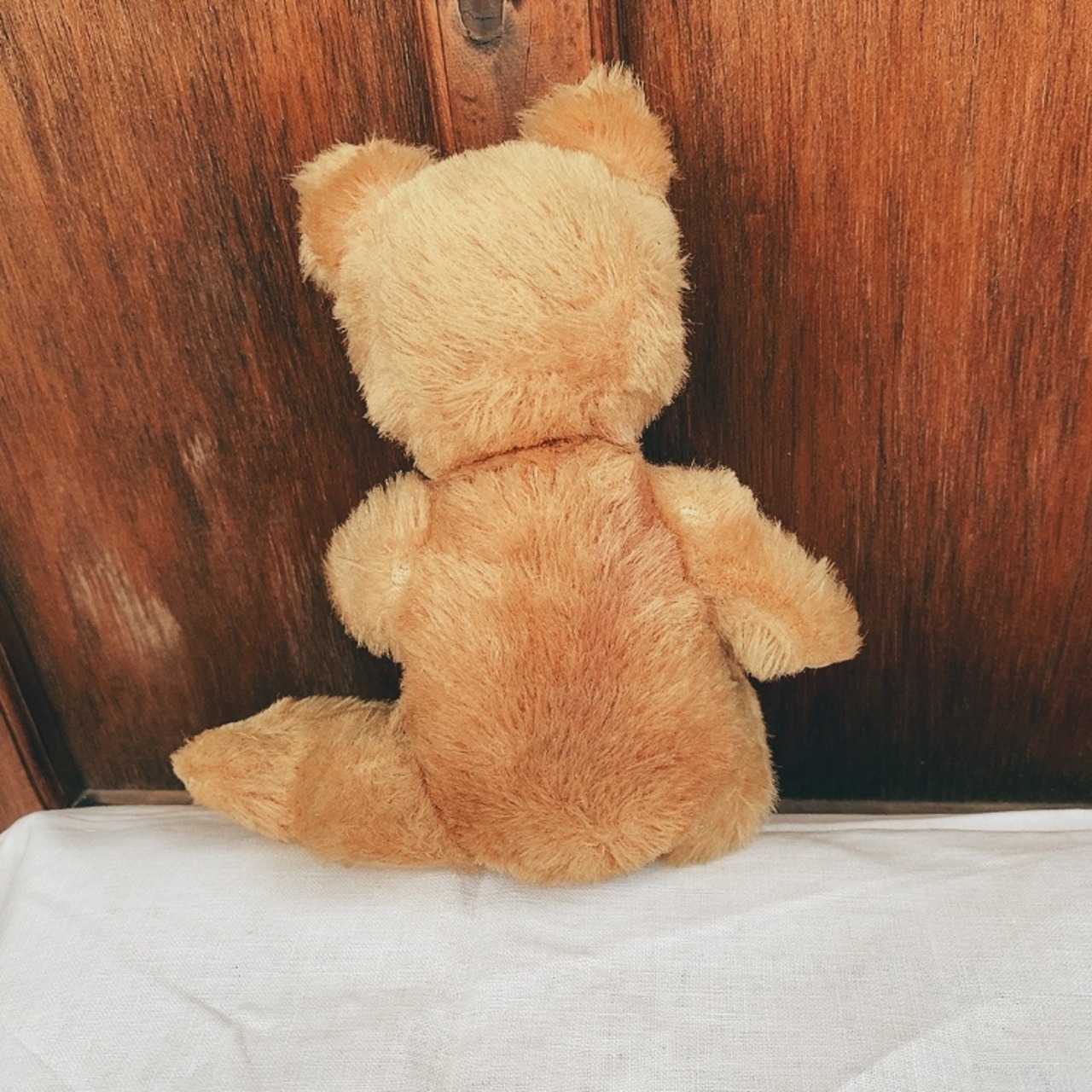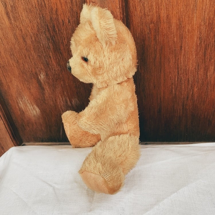 プラスチックアイで口は一文字。どの角度から見てもかわいいくまちゃんです。