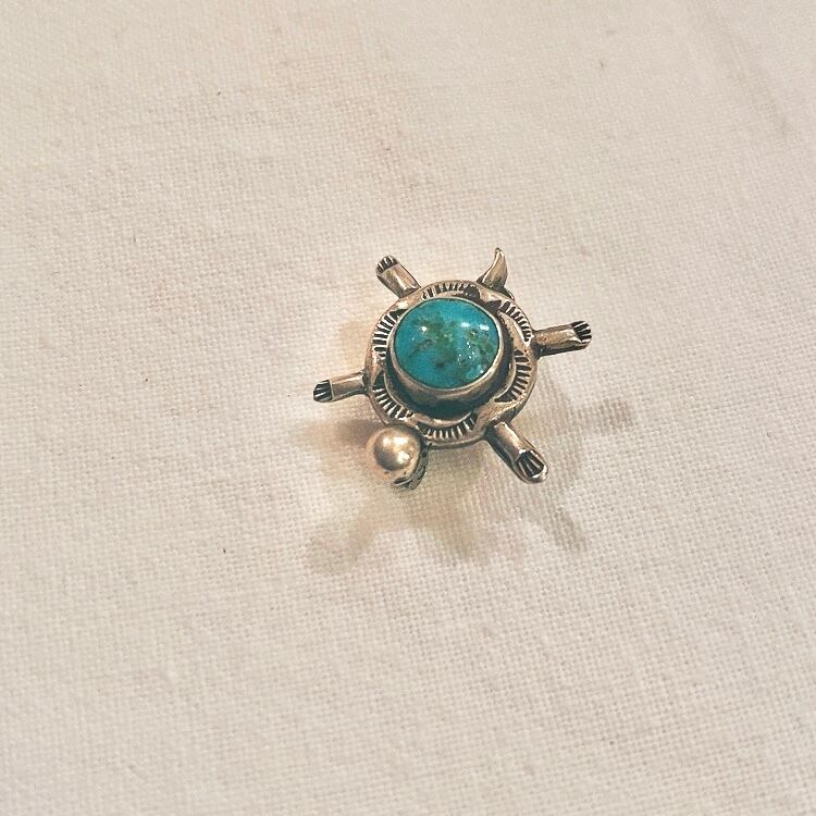 刻印はありませんが、おそらくシルバーでターコイズが使われていると思われます。