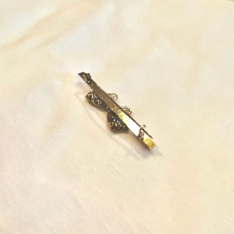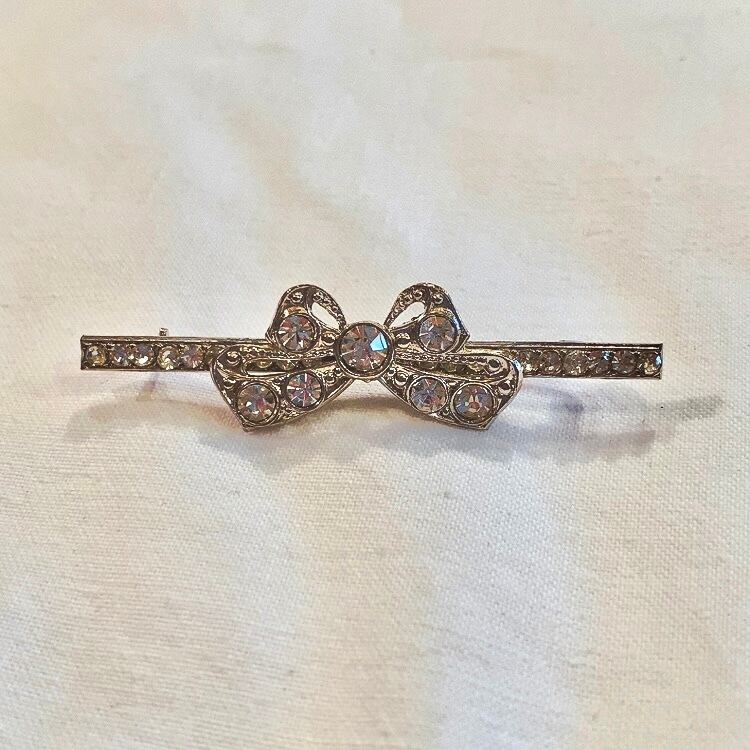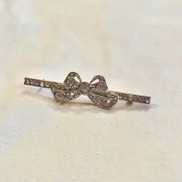 デッドストック ラインストーン リボンバーブローチ(b91)