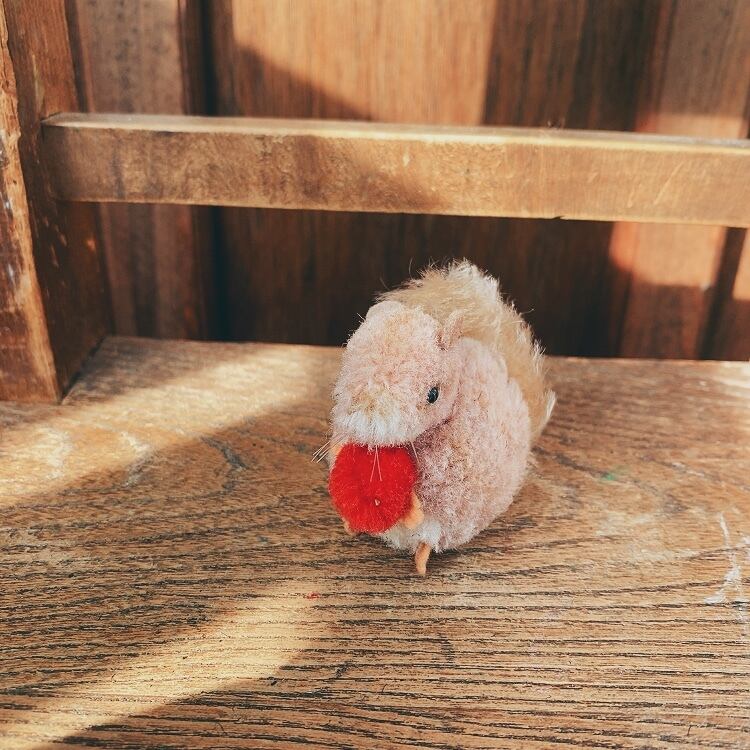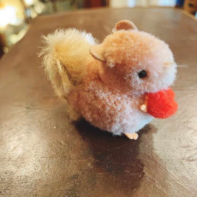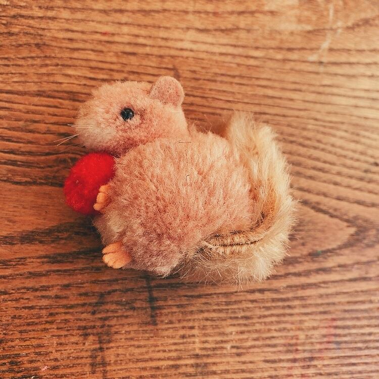 お腹の中は綿でふわふわ。尻尾にはハリガネが入っていで固定されています。プラスチックアイ、手足と耳はフェルトです。