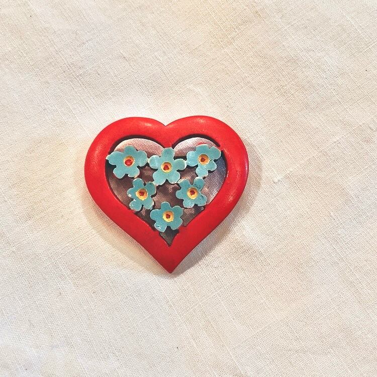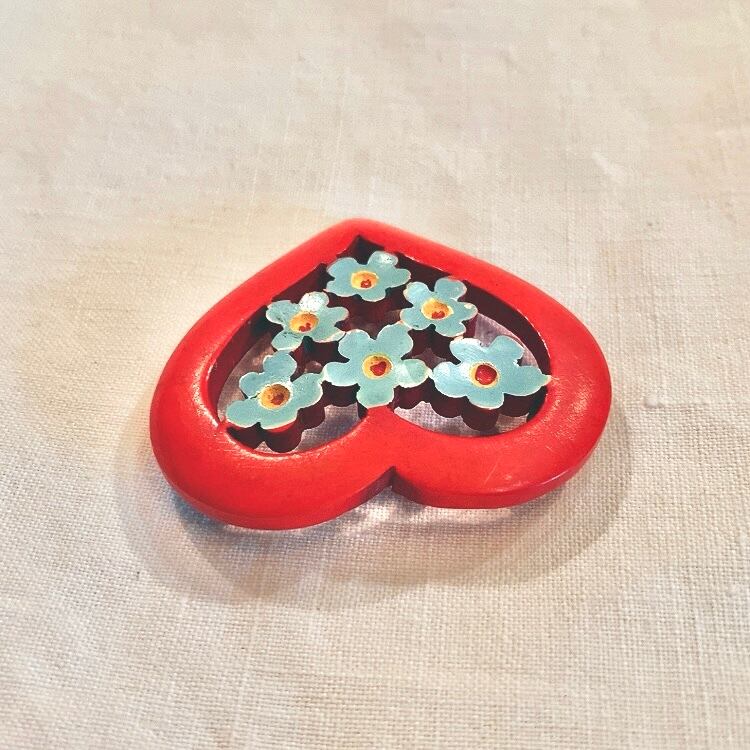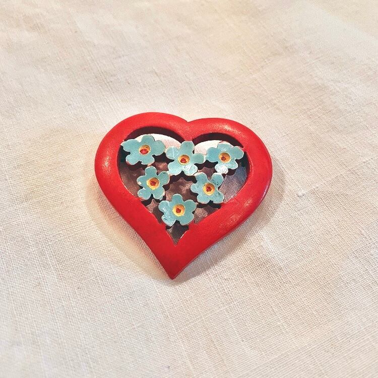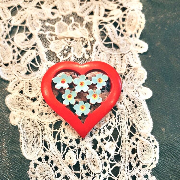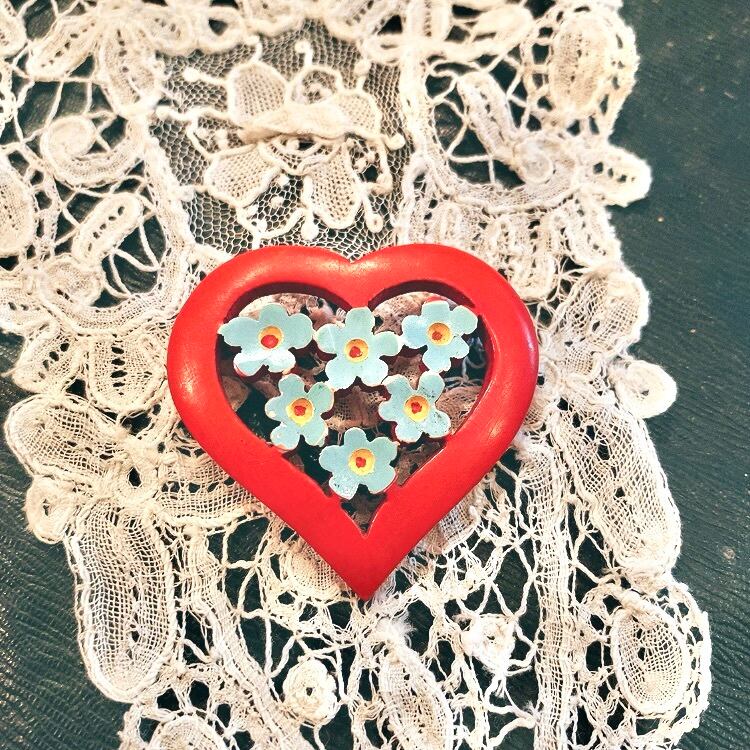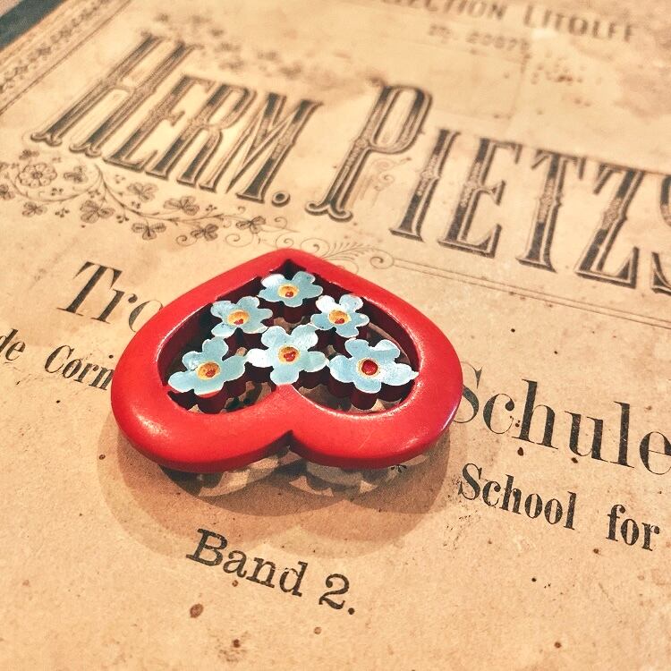 ハートと勿忘草。可愛くすぎるコンビネーションのブローチ。