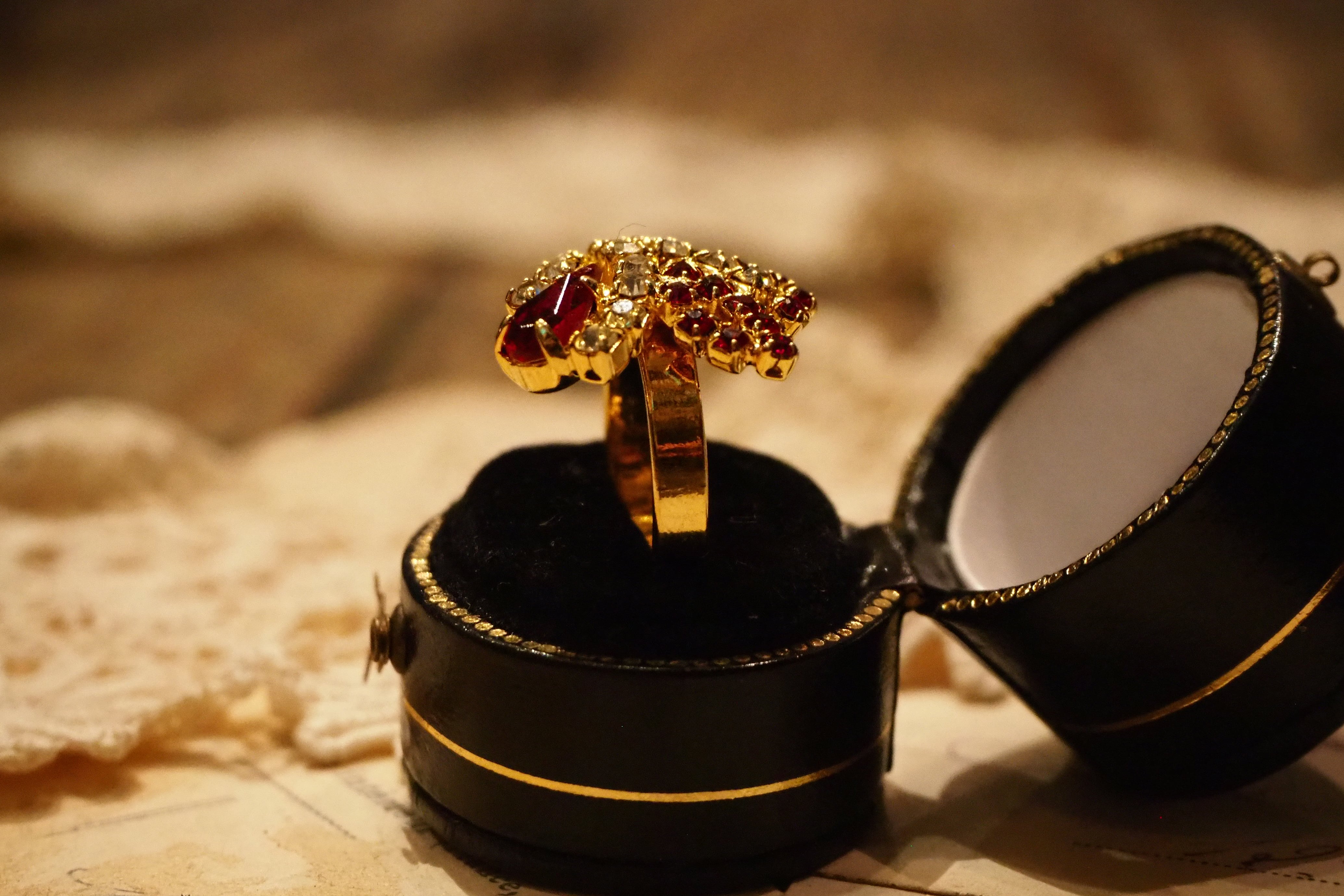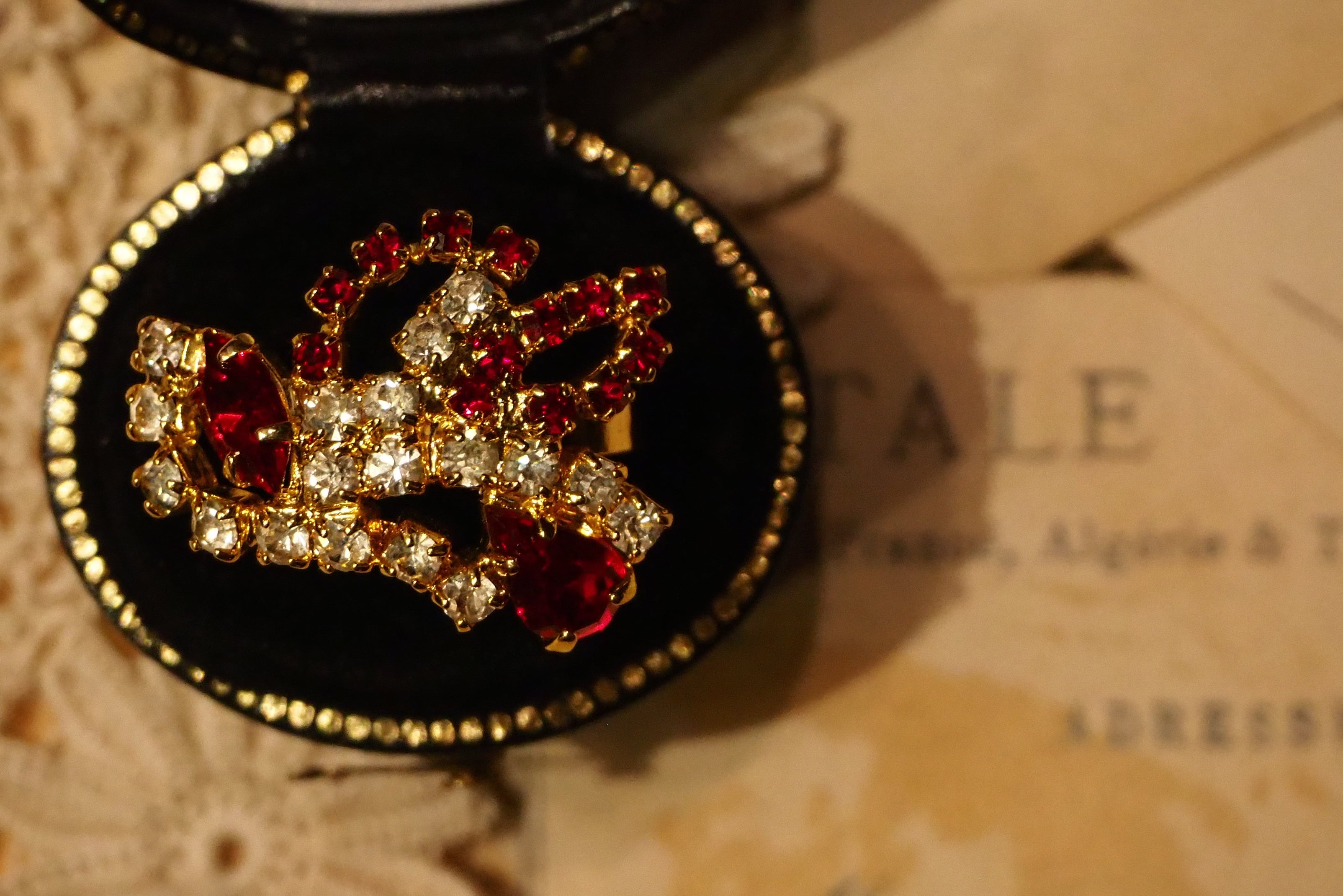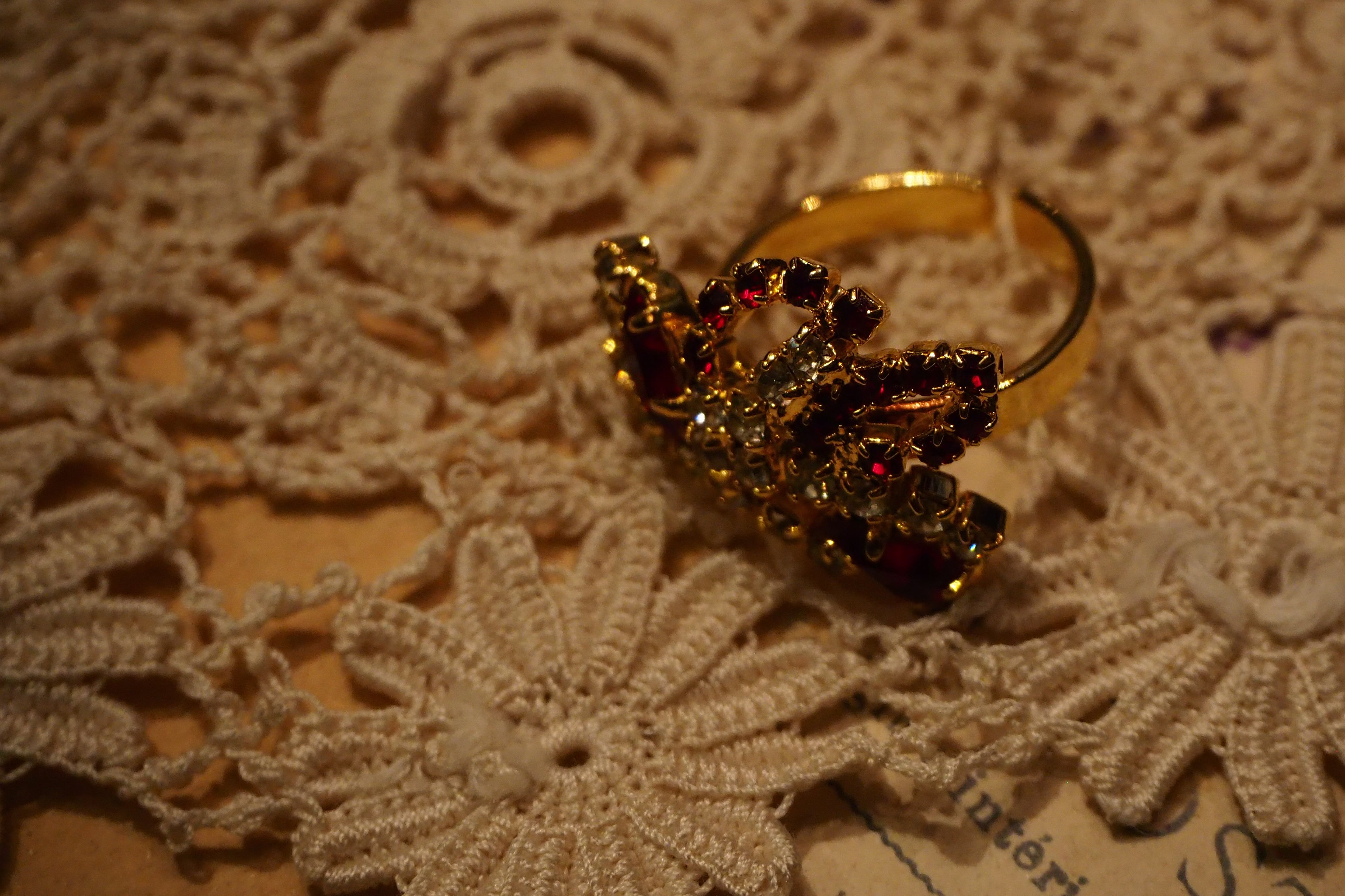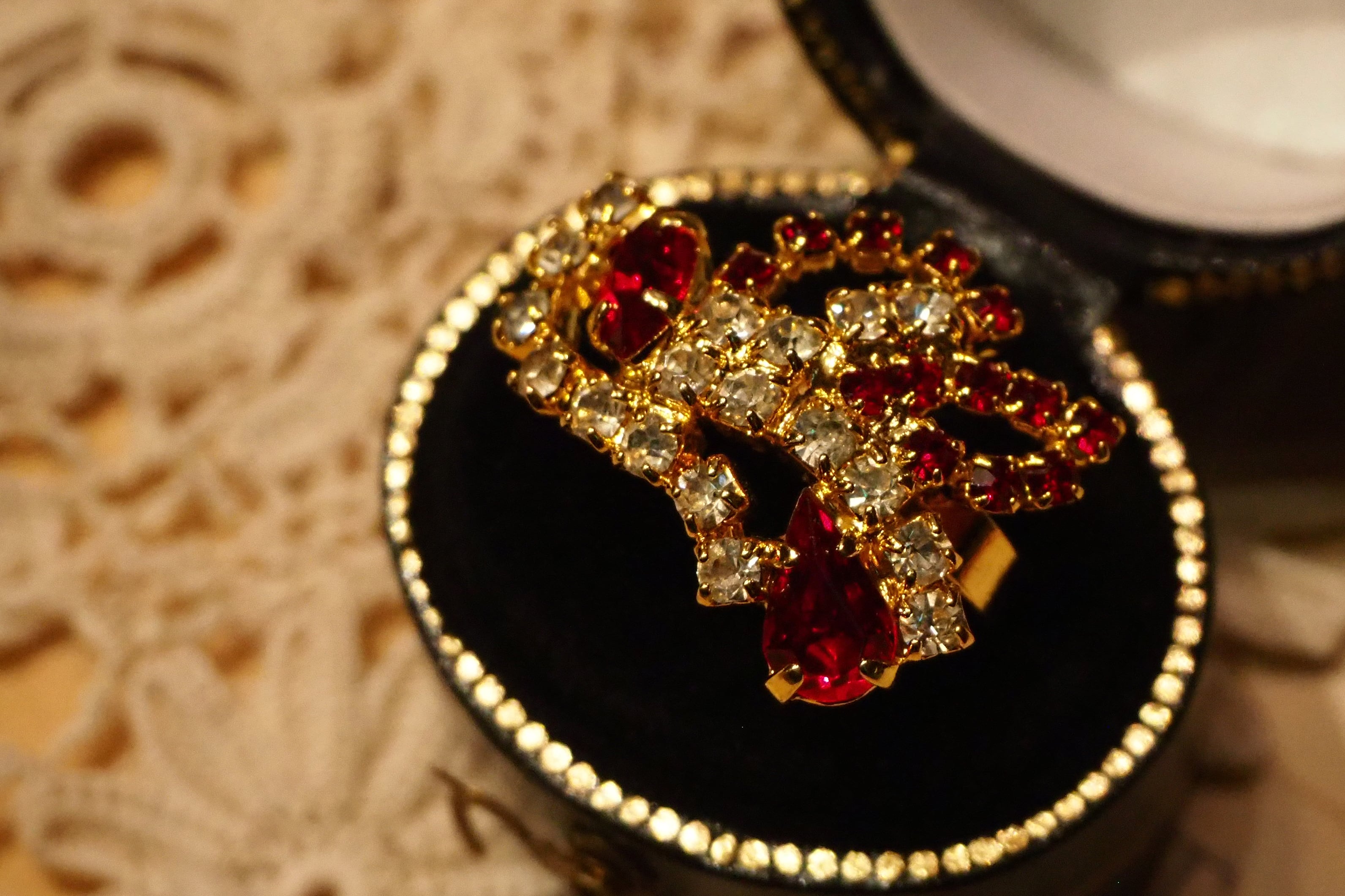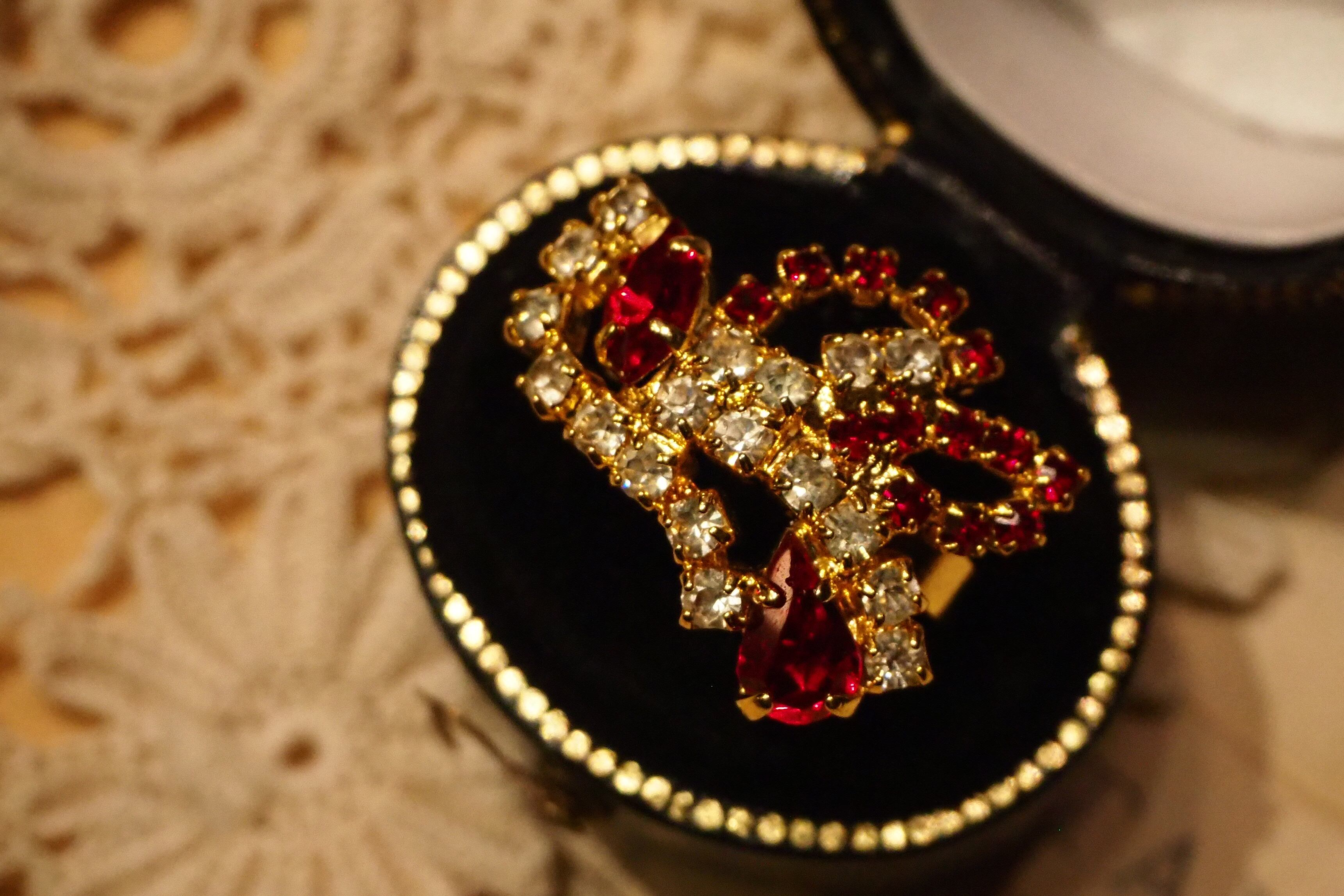デッドストック コスチュームジュエリーのリング(赤、クリア)【anac01164】