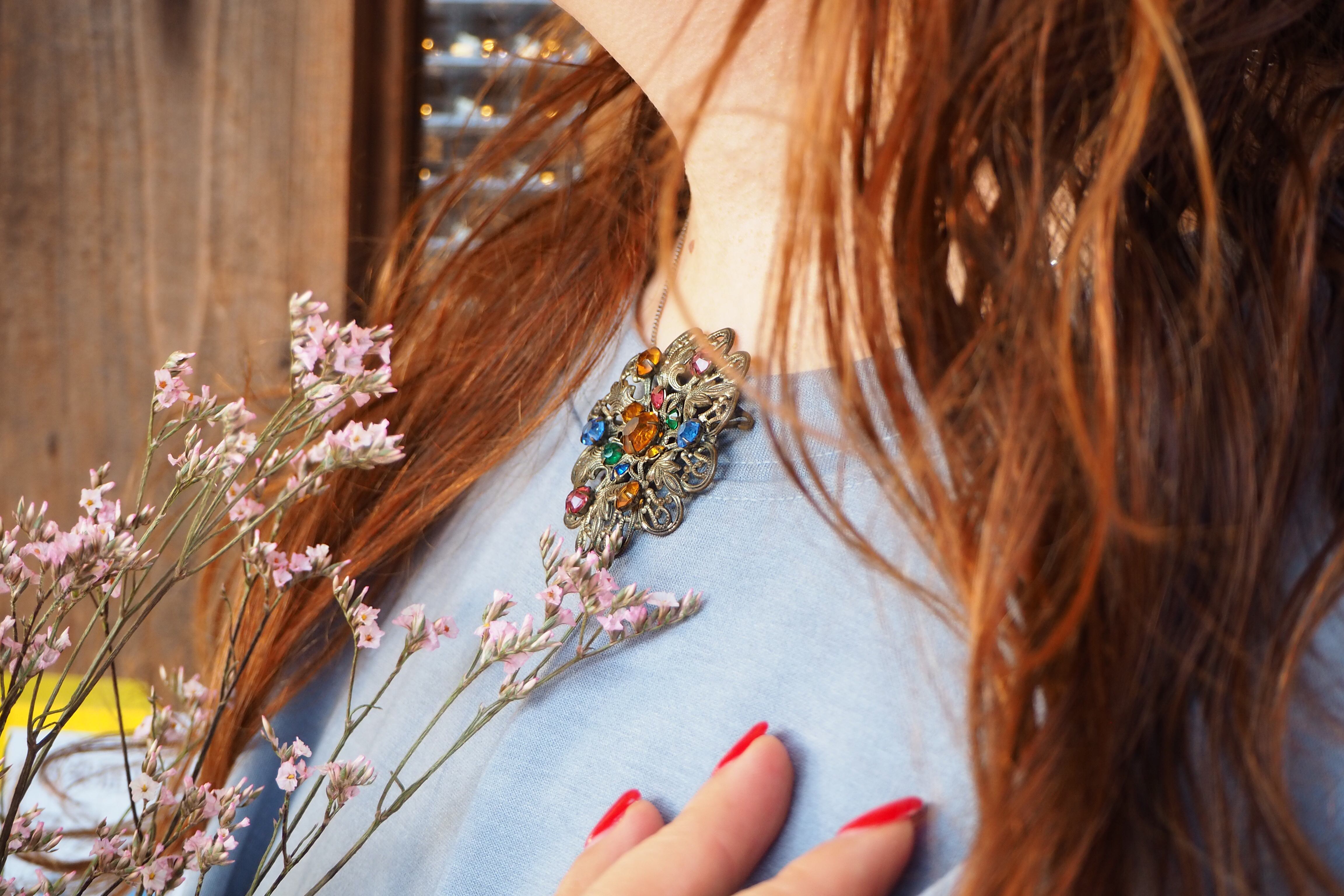 エレガントなファッションはもちろん、Tシャツやデニムなどのカジュアルなファッションにも合わせていただきたいブローチです。