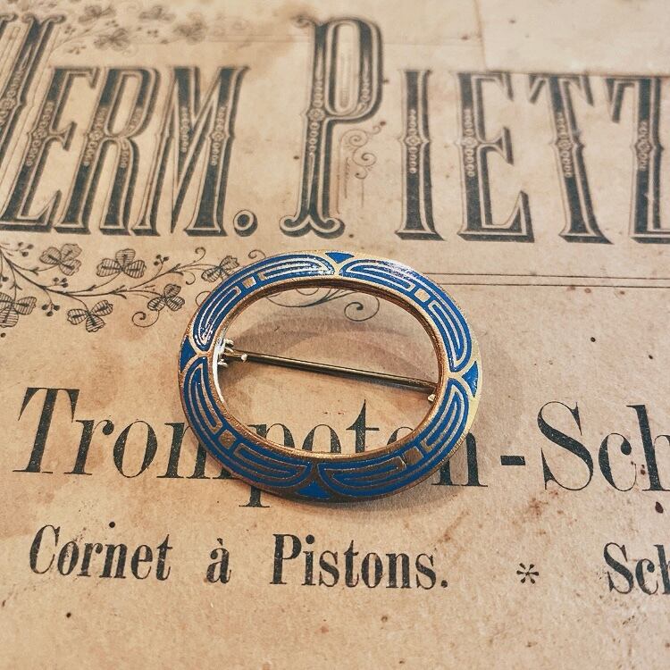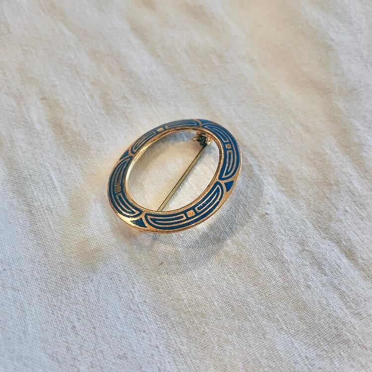 デッドストック チェコエナメル オーバルのブローチ(b103)