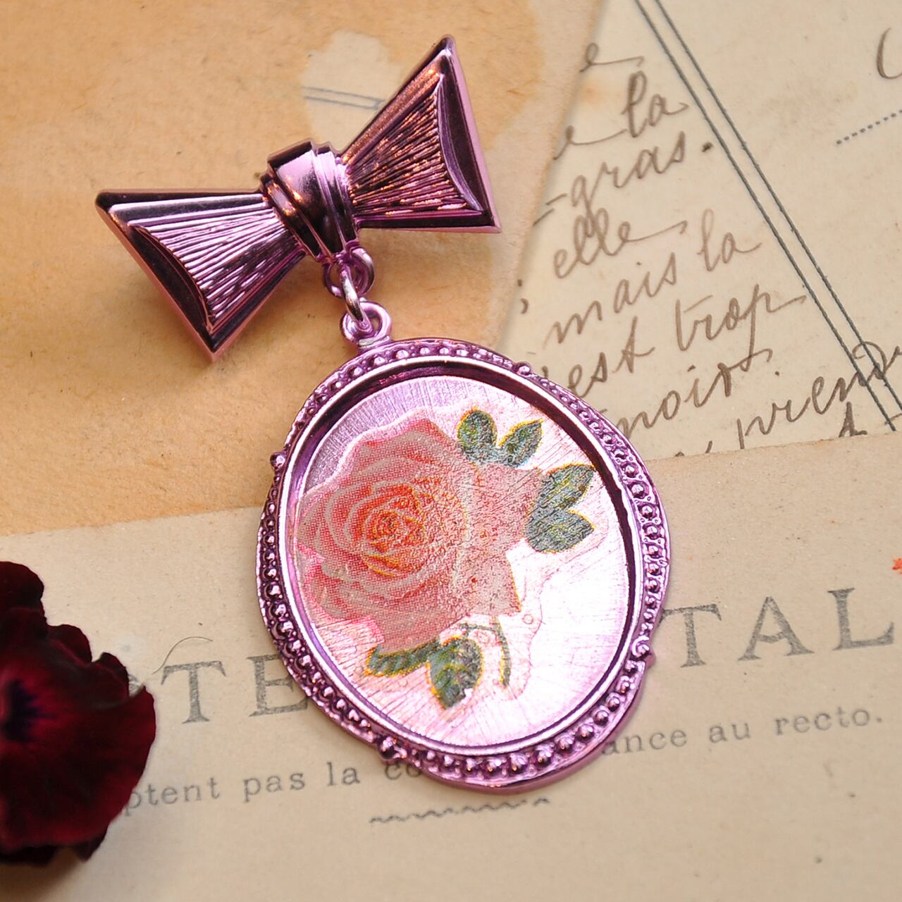 デッドストック メタリックピンク薔薇のブローチ【anac01136】