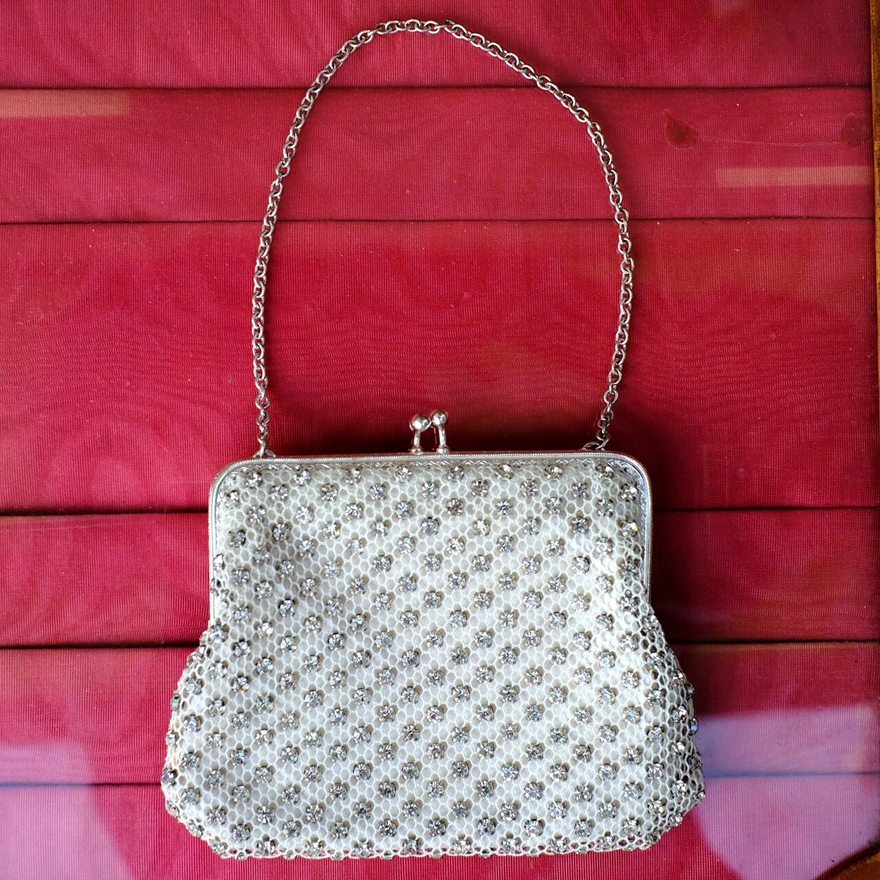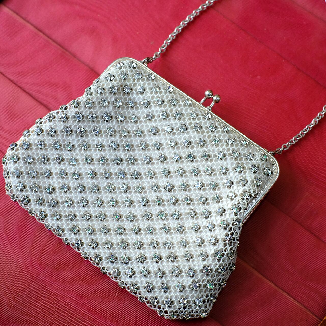 デッドストック 白いチェコガラスのパーティバッグ【anac01224】