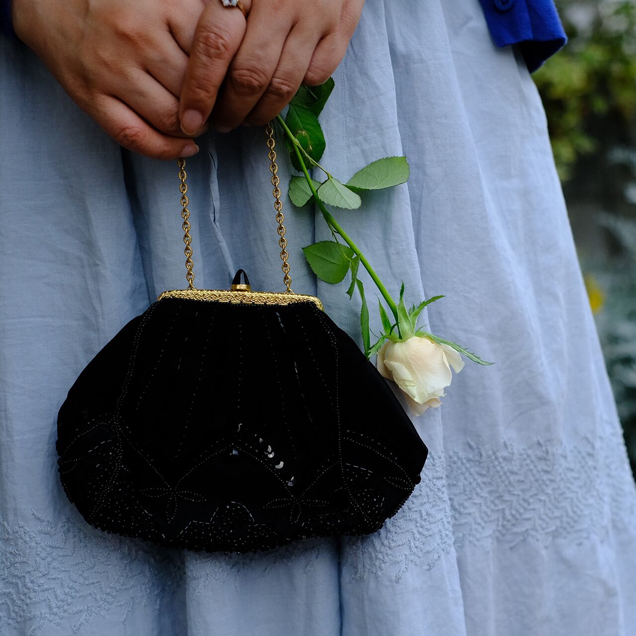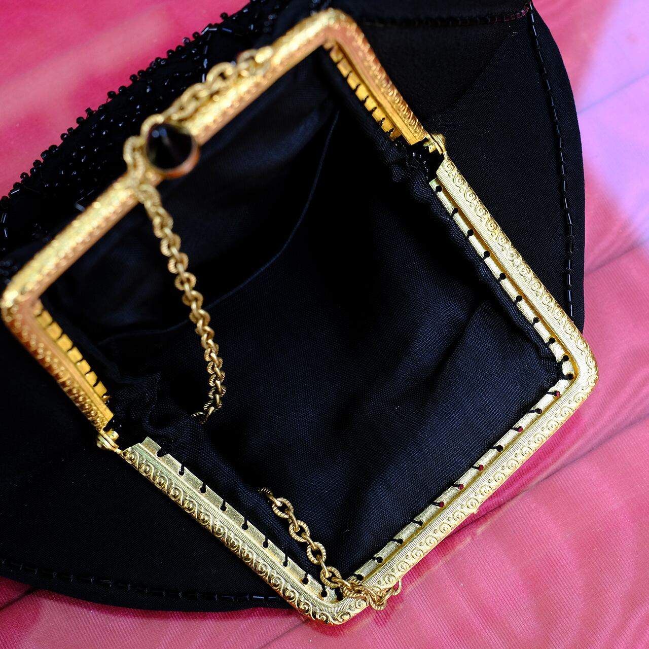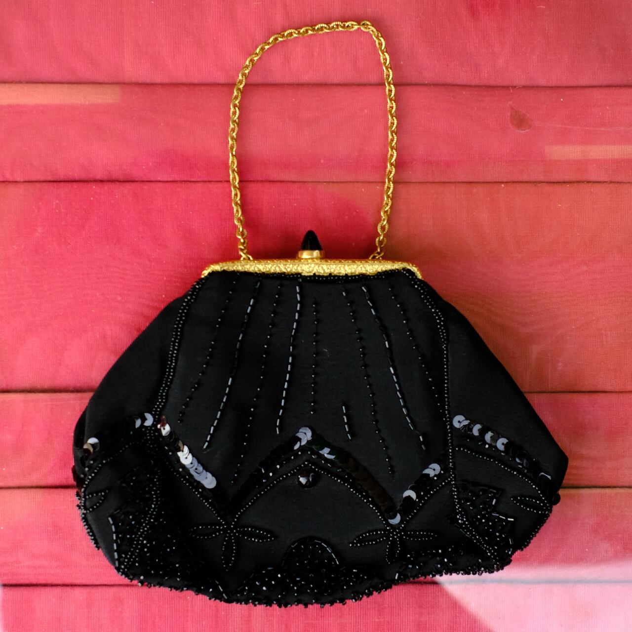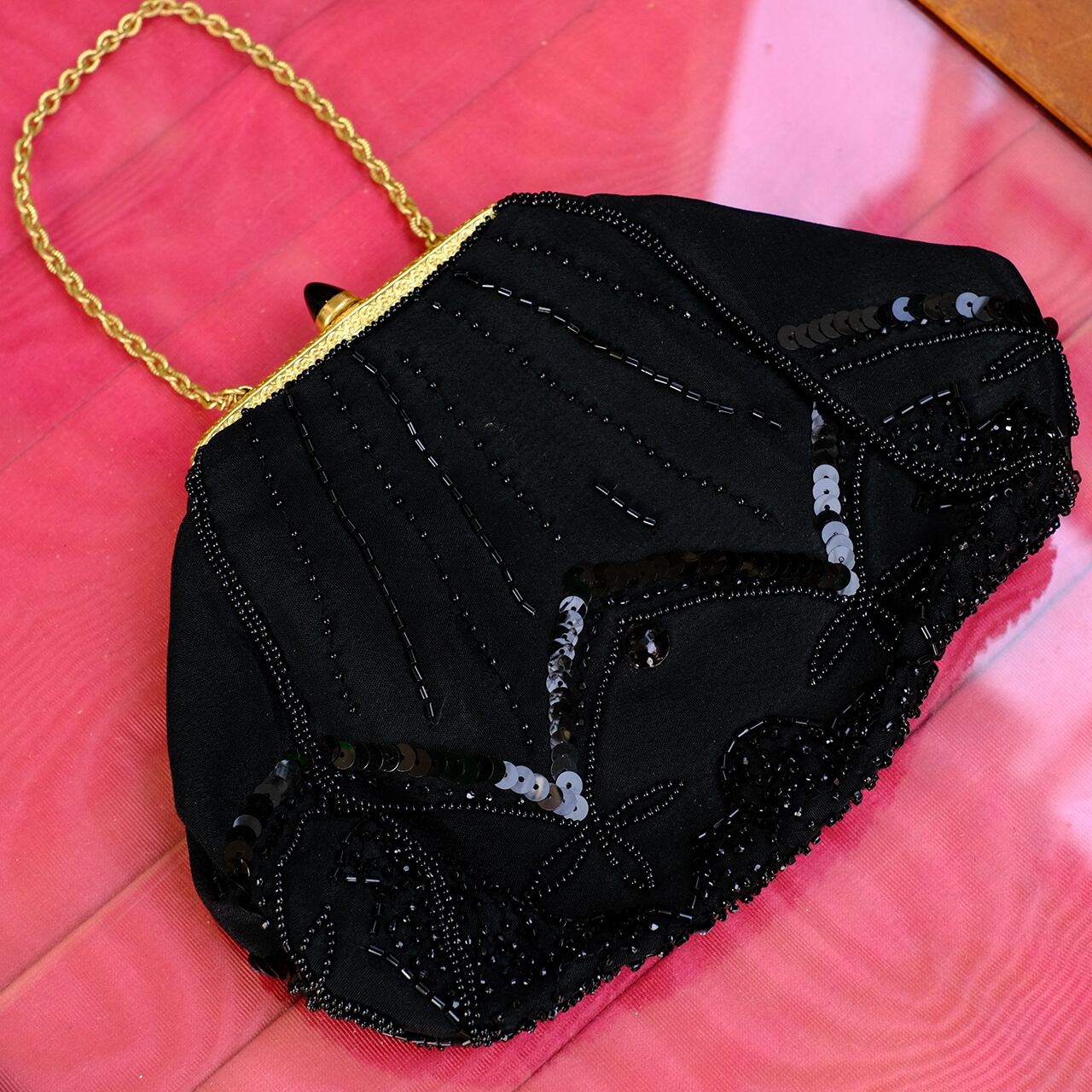 デッドストック ビーズとスパンコールのパーティバッグ(黒)【anac01225】