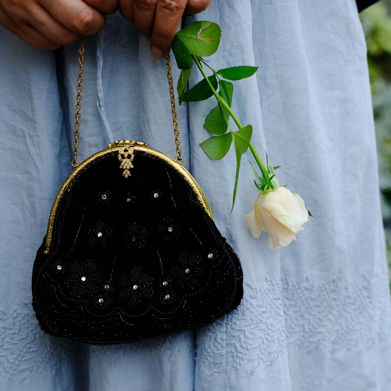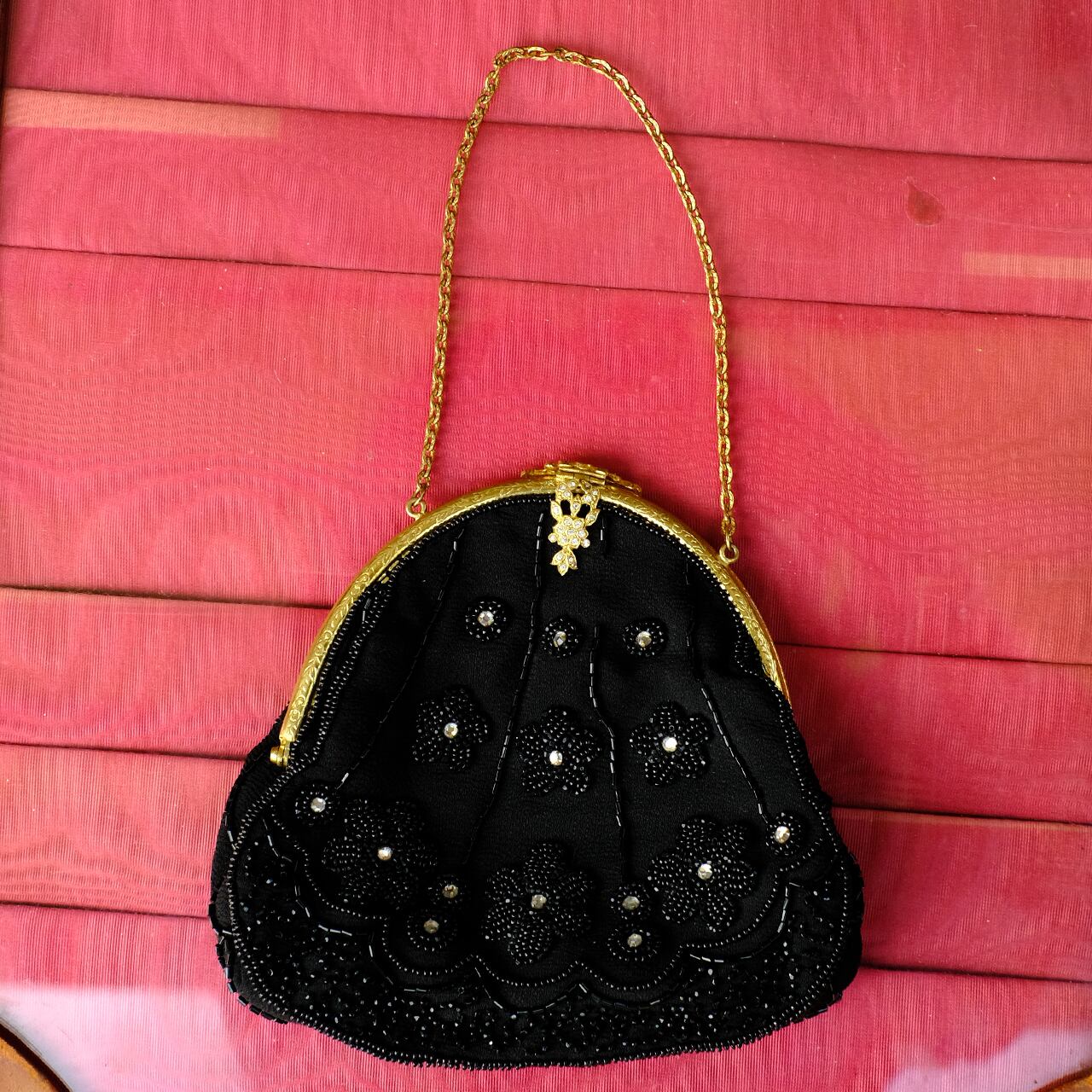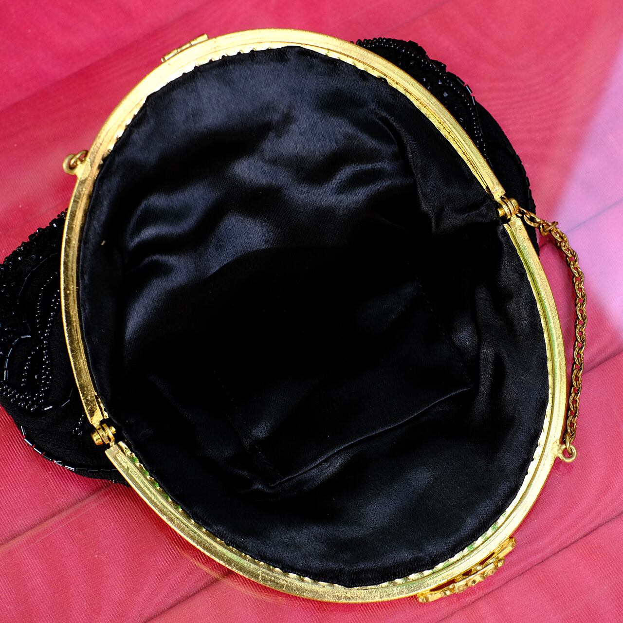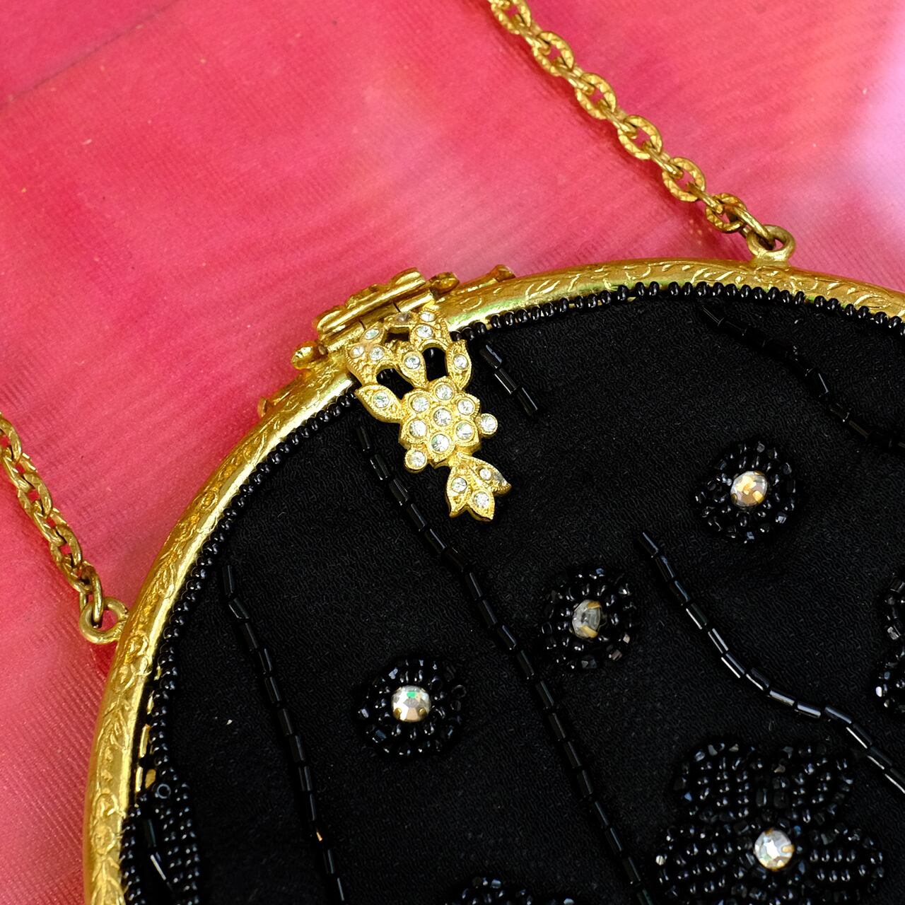 デッドストック ラインストーンとビーズのパーティバッグ(黒)【anac01226】