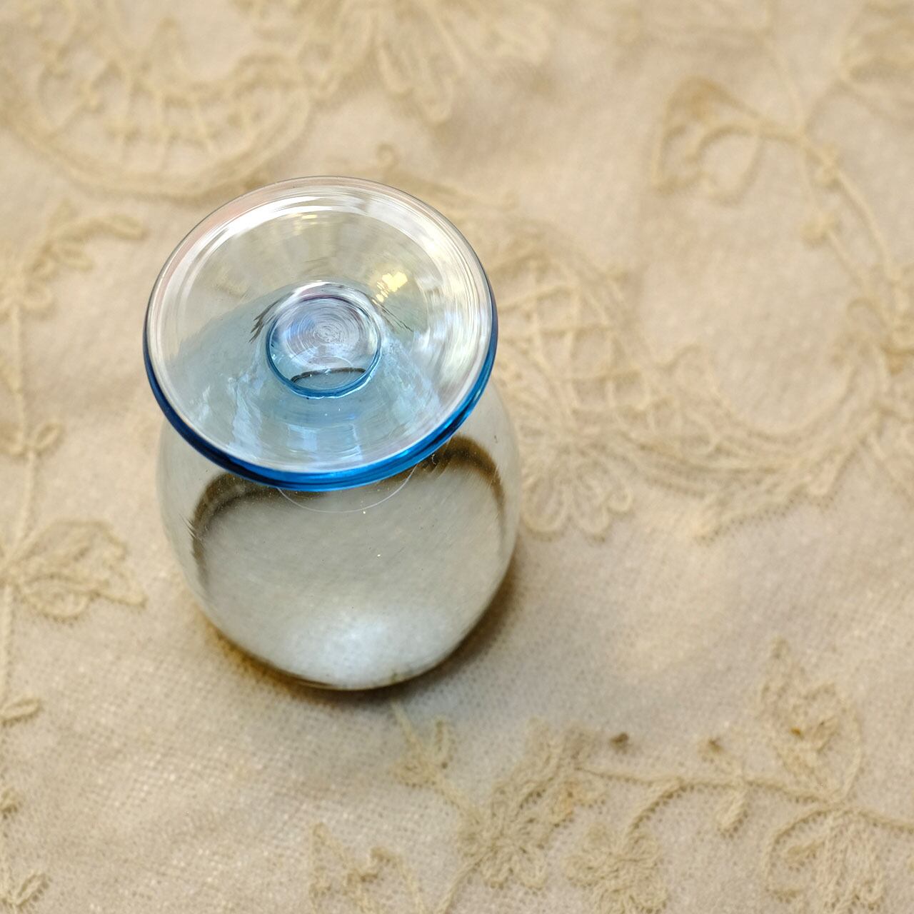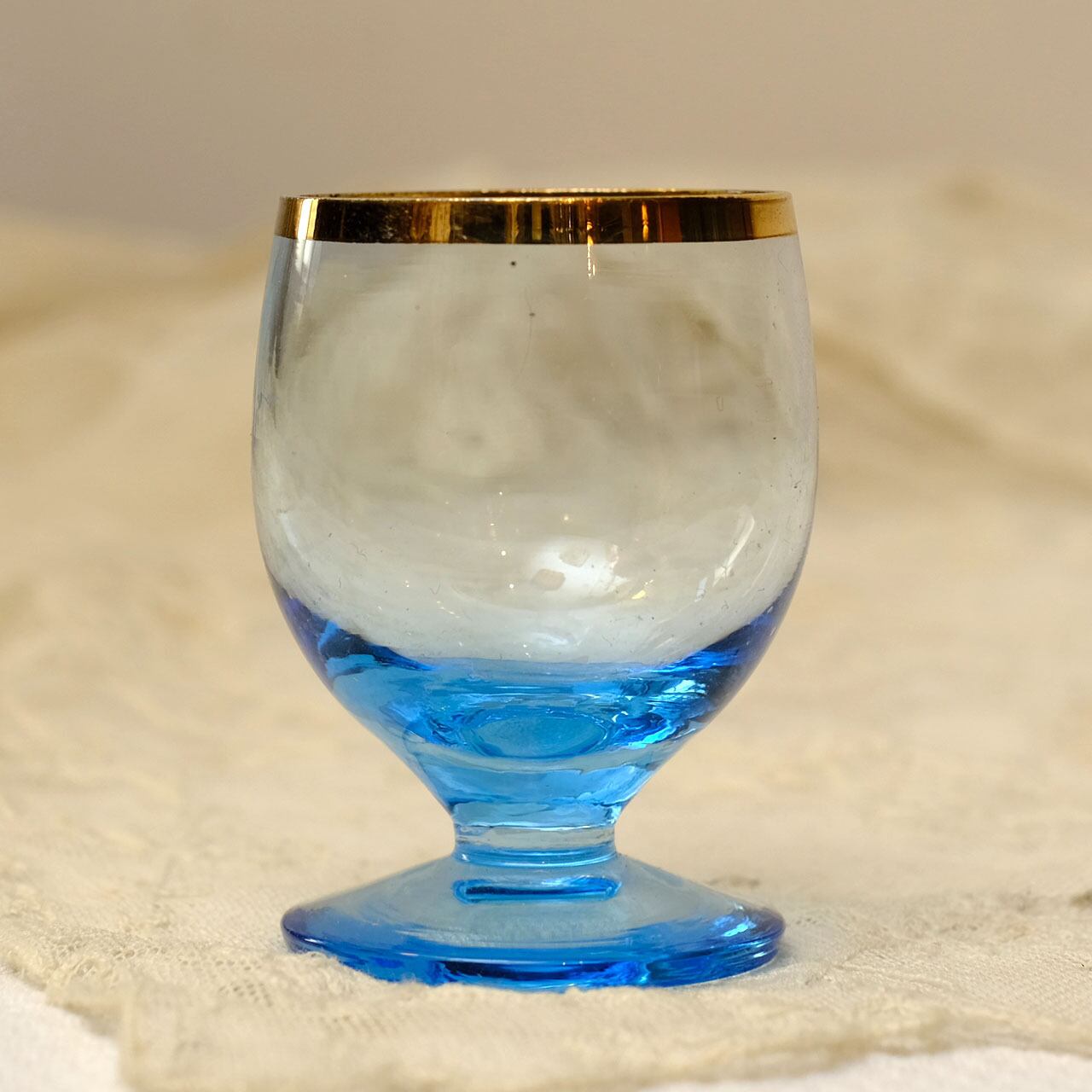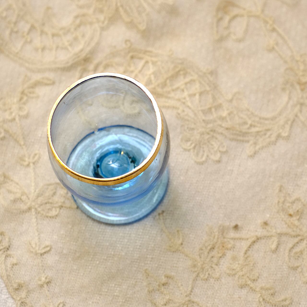 クリアなブルーのチェコガラスにゴールドのラインが印象的に入っていて、どんな食卓やお部屋、ドリンクにも美しくしっくりと馴染んでくれます。