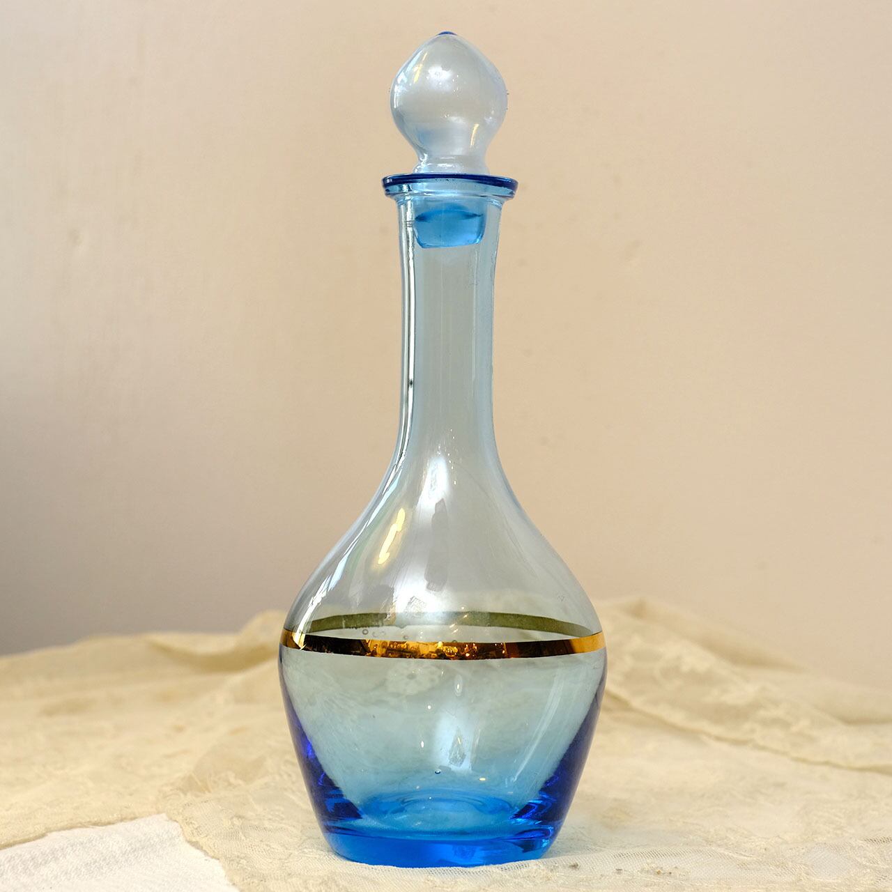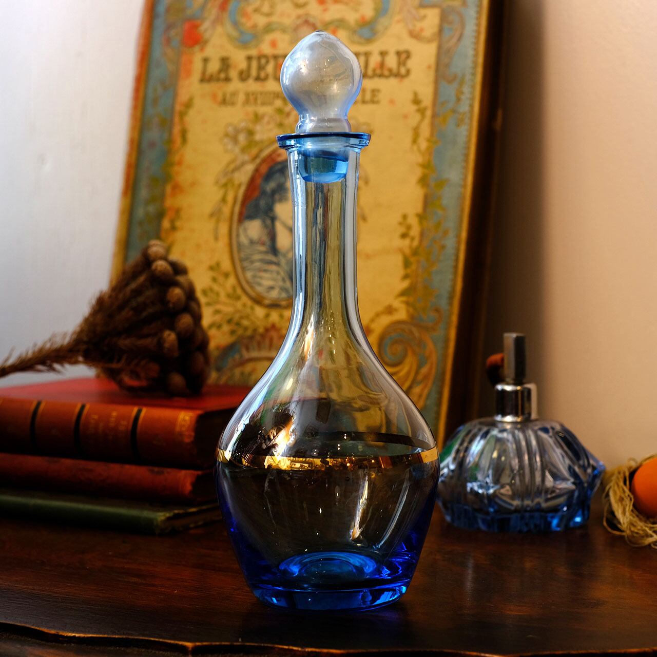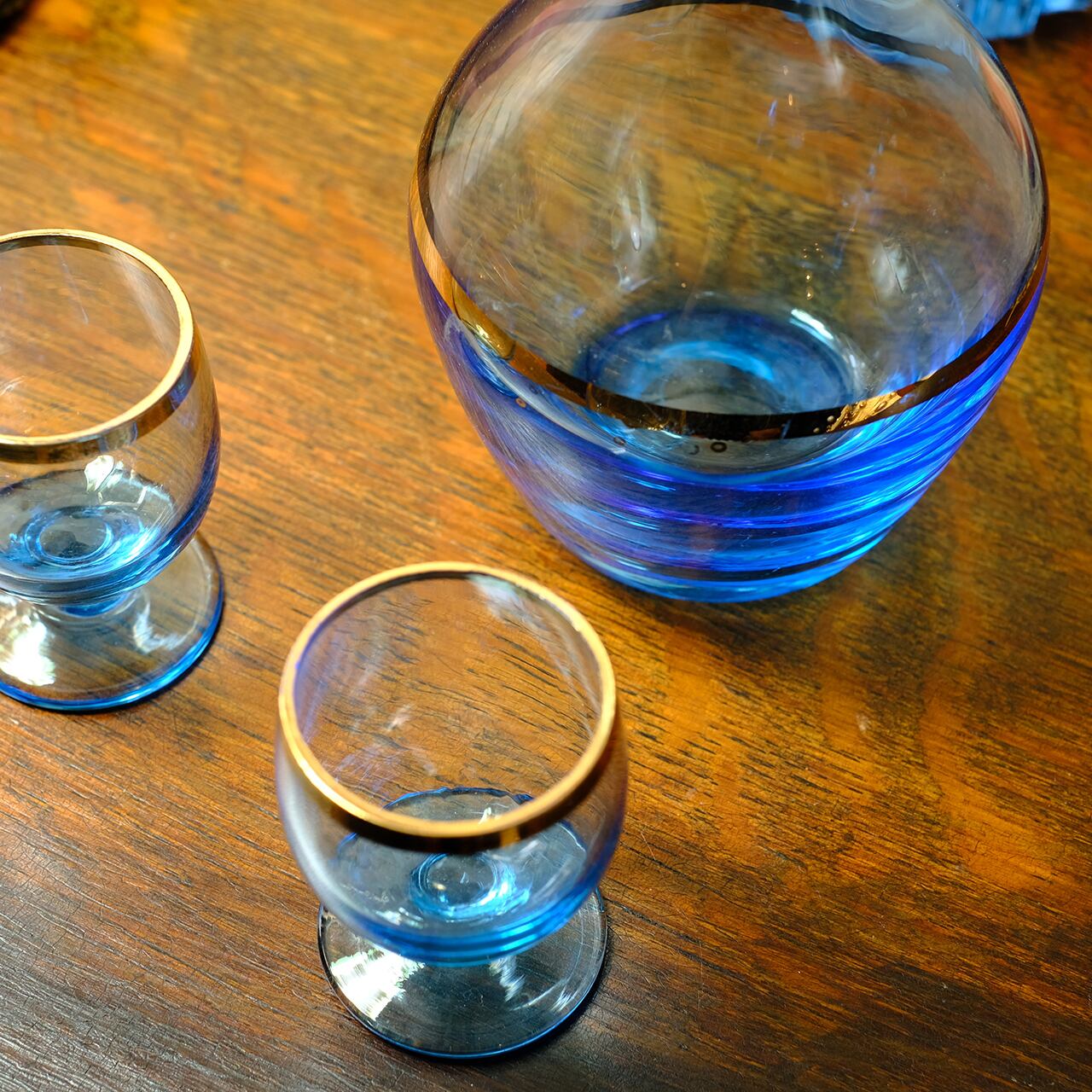 デッドストック ブルーチェコガラス デキャンタ+リキュールグラスセット【anfa00261】