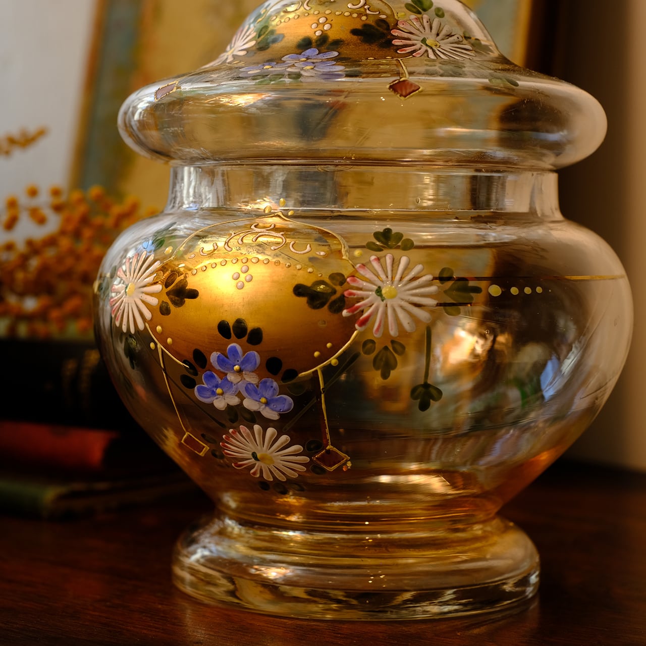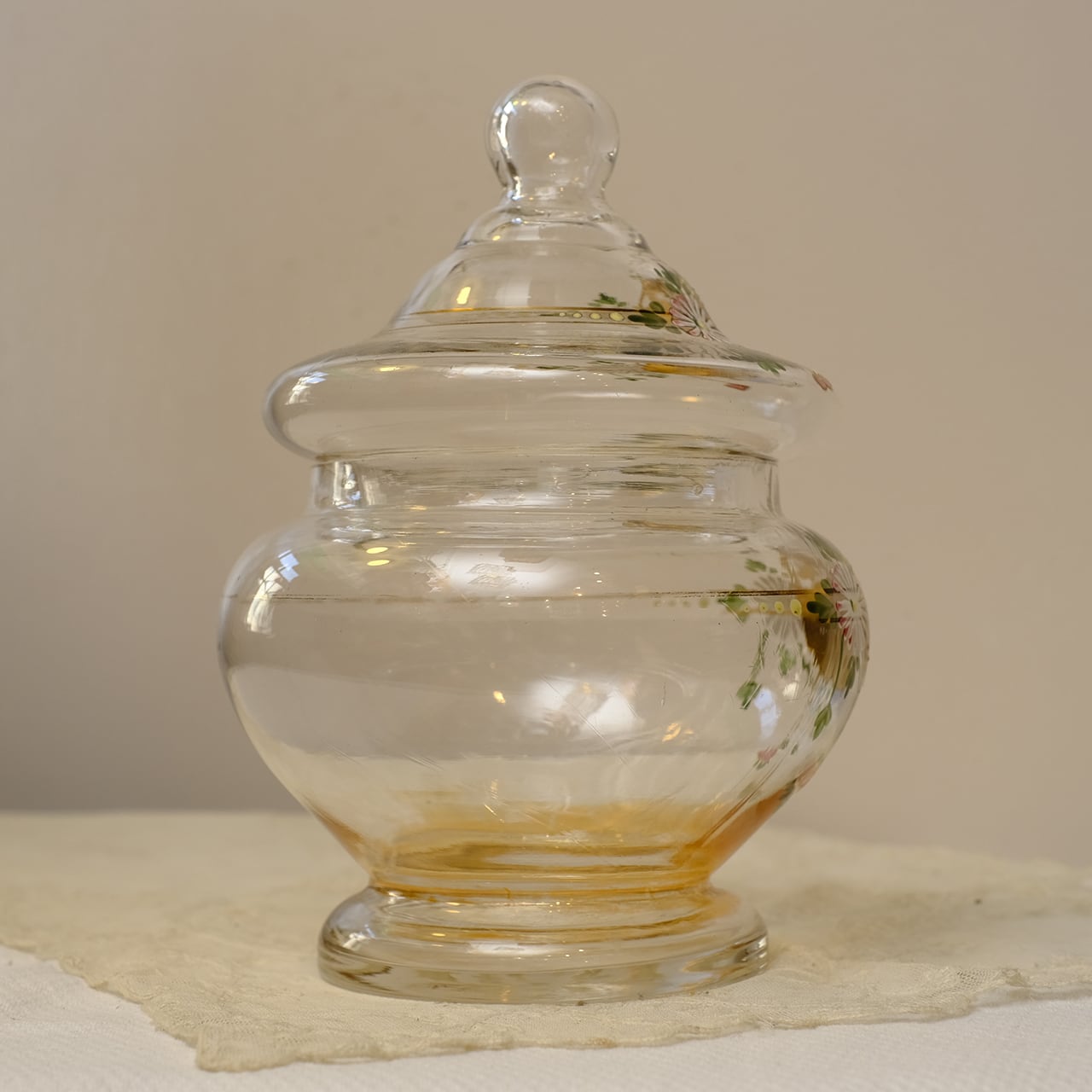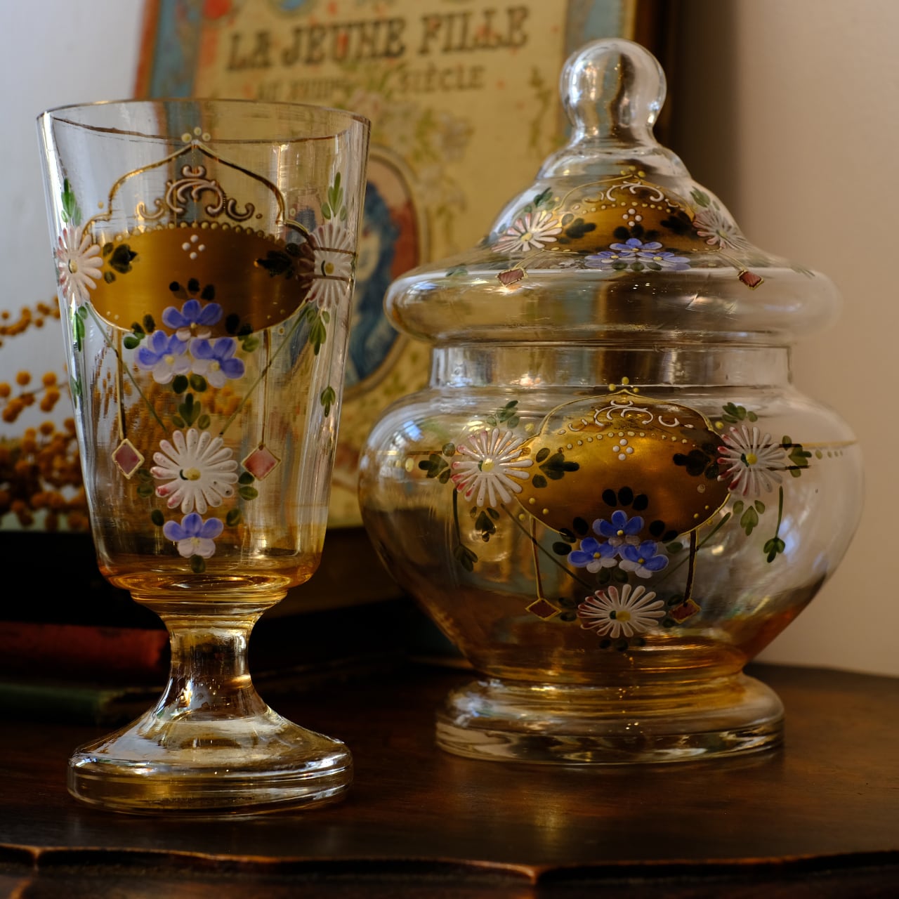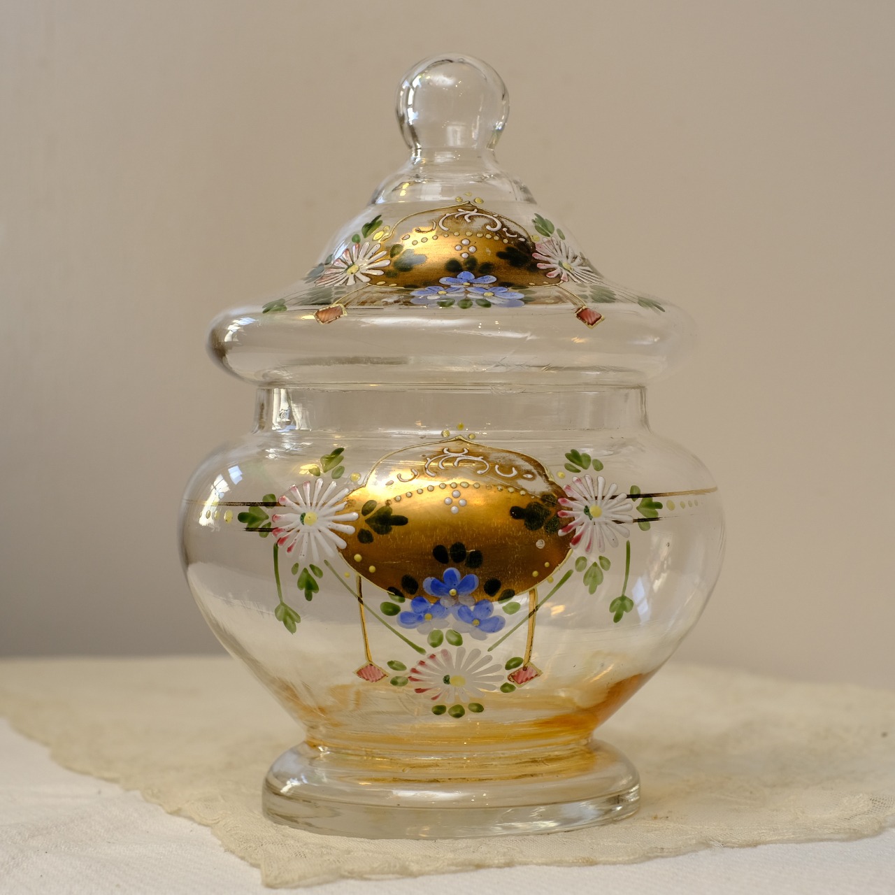 エナメル彩 勿忘草キャンディーポット(アンティークボヘミアンガラス)【anfa00262】