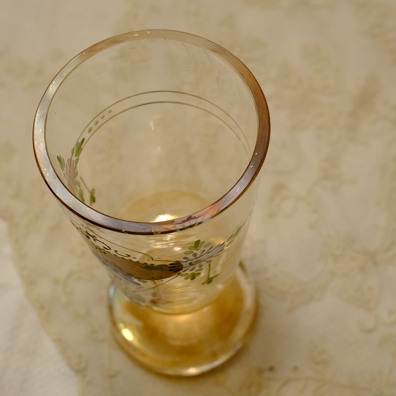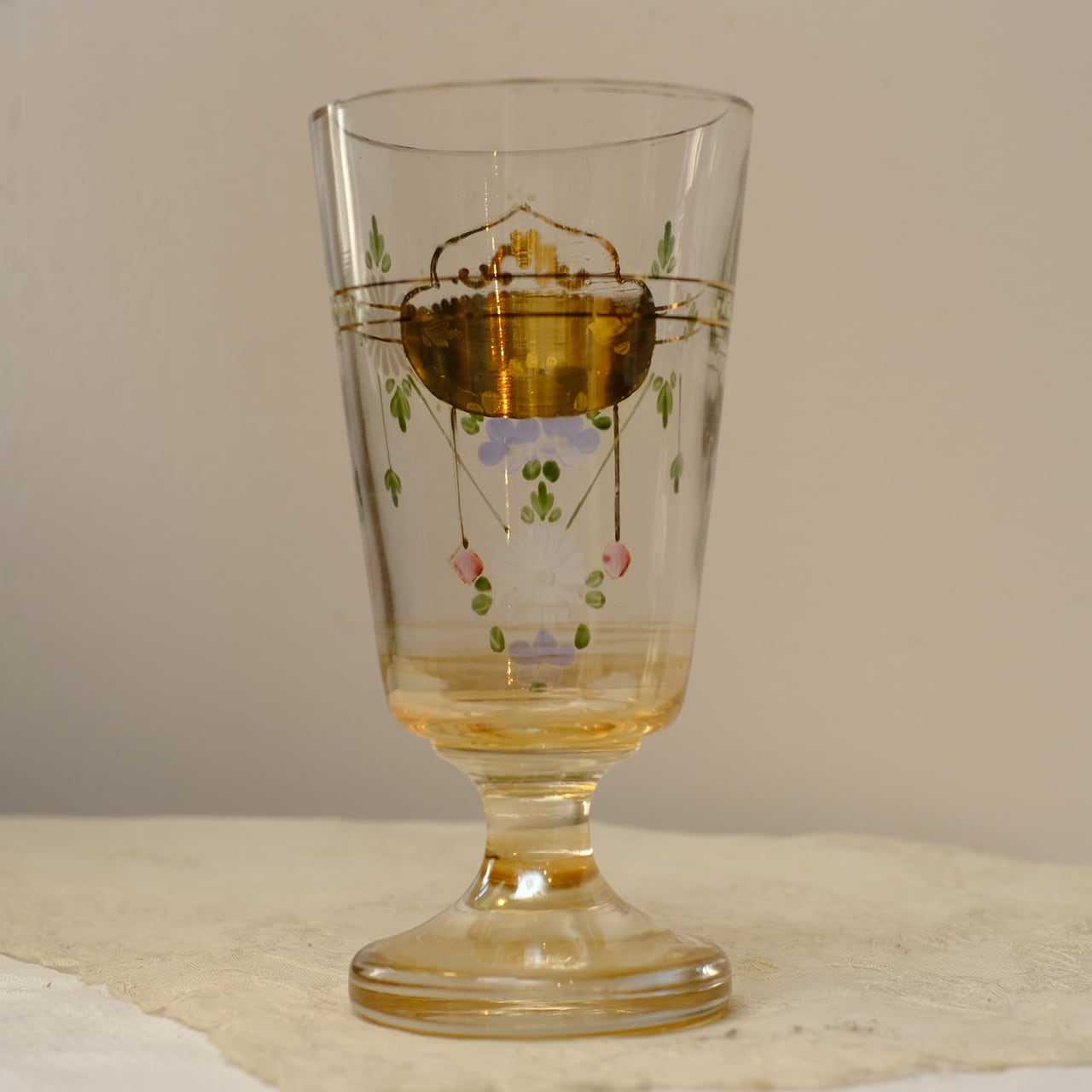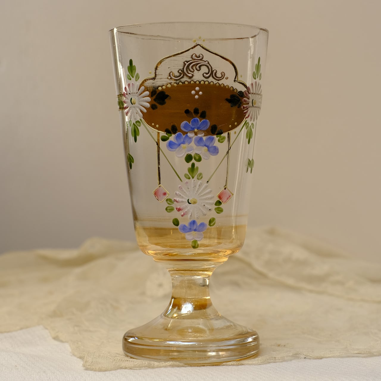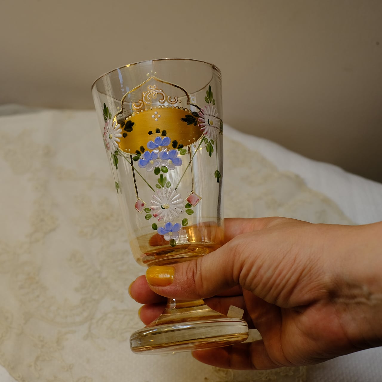 エナメル彩 勿忘草ゴブレット(アンティークボヘミアンガラス)【anfa00263】