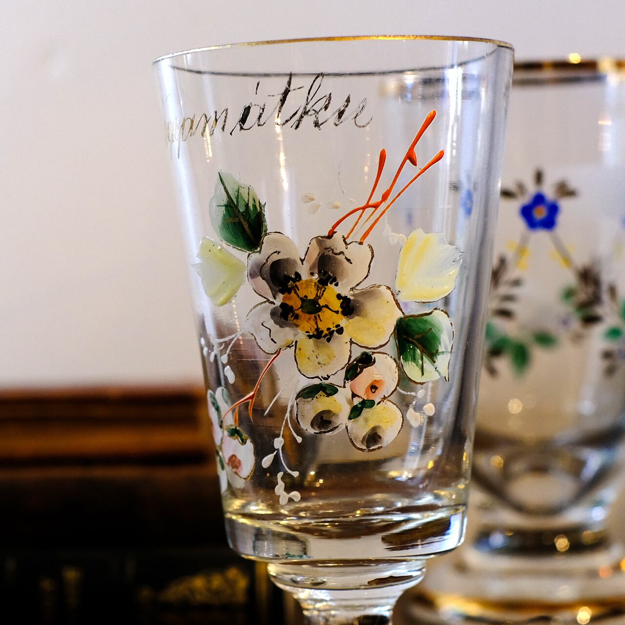 花と蕾のゴブレット(アンティークボヘミアンガラス)【anfa00271】