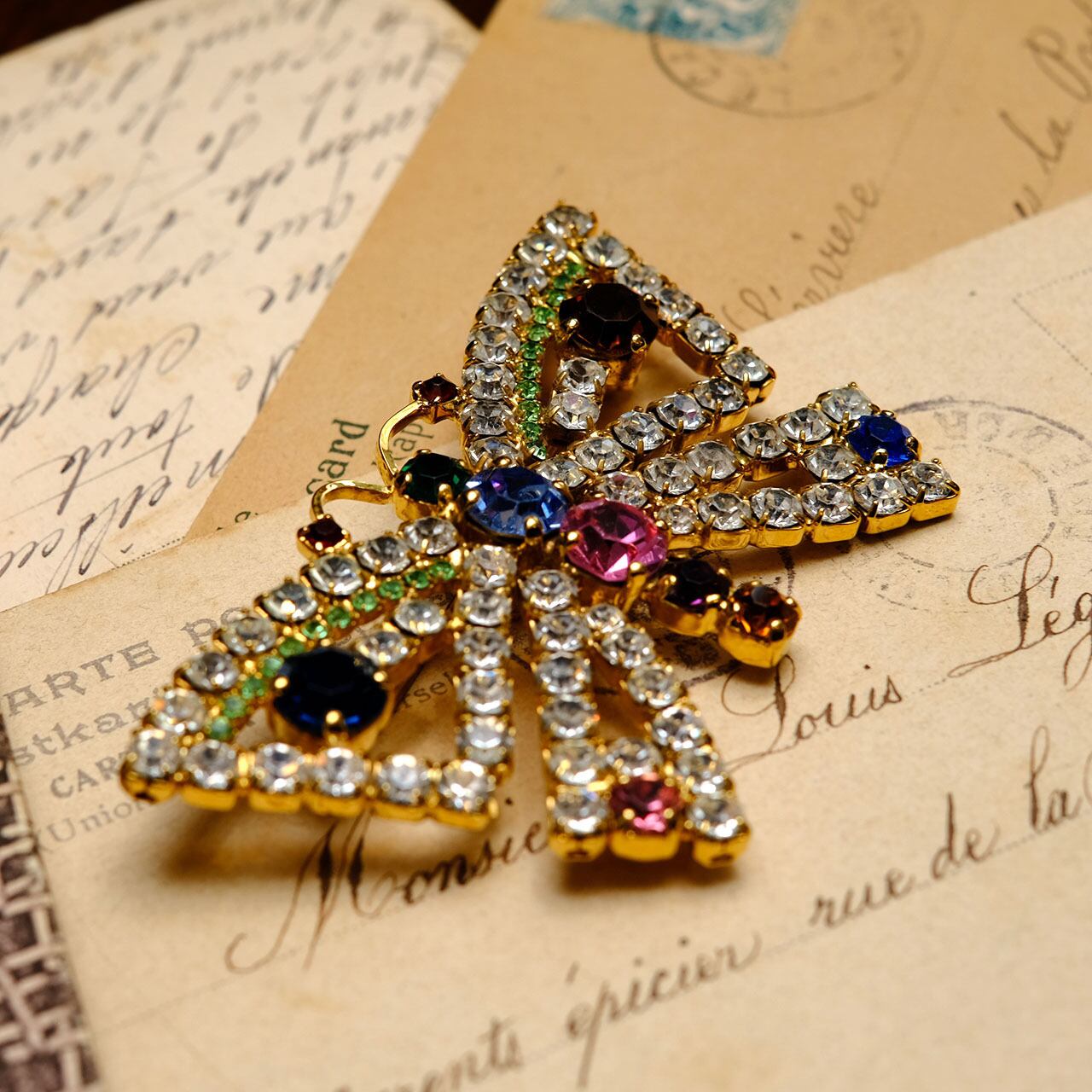 デッドストック ラインストーン蝶のブローチ【anac01244】