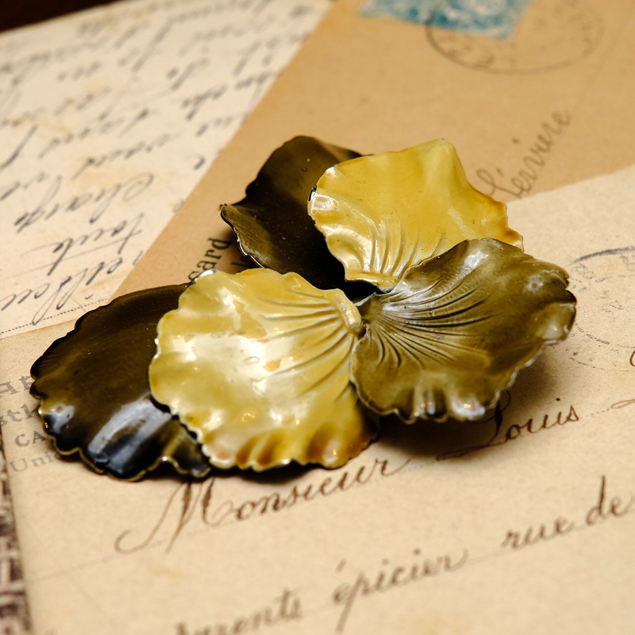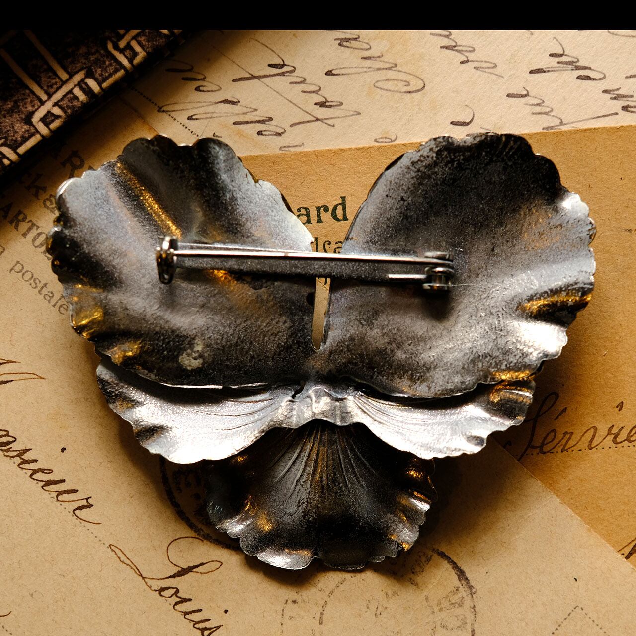 デッドストック パンジー(スミレ)のメタルブローチ【anac01245】